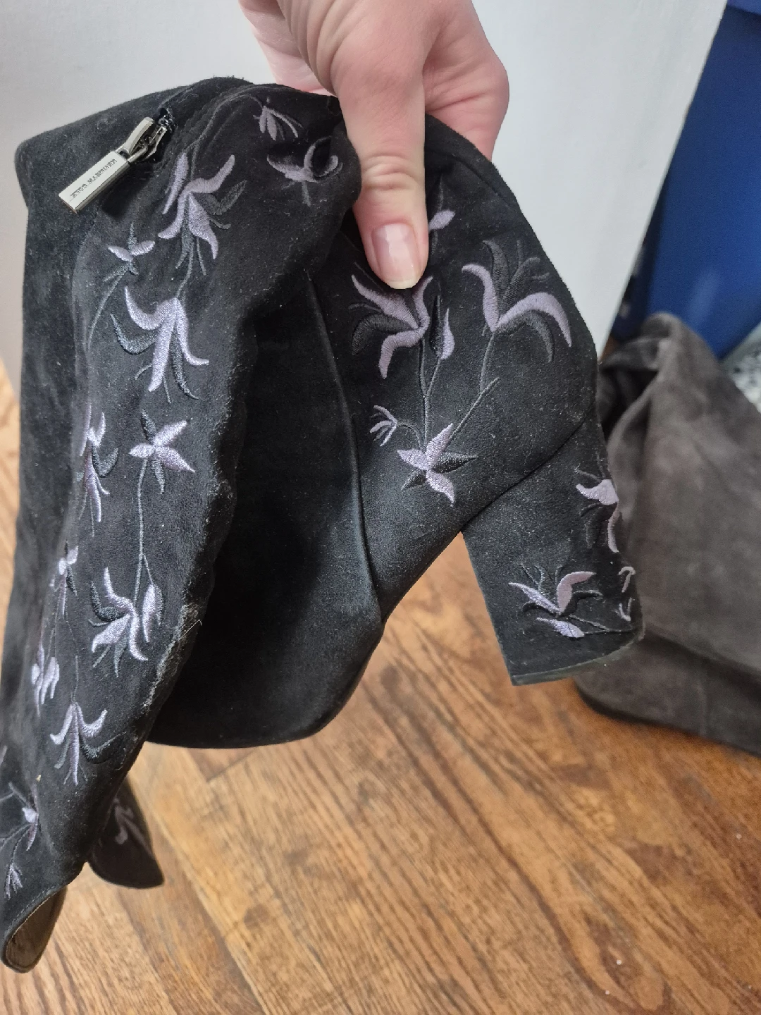 Selling a pair of beautiful Kenneth Cole black suede over-the-knee boots. They feature lovely floral embroidery. Size 7.5M.