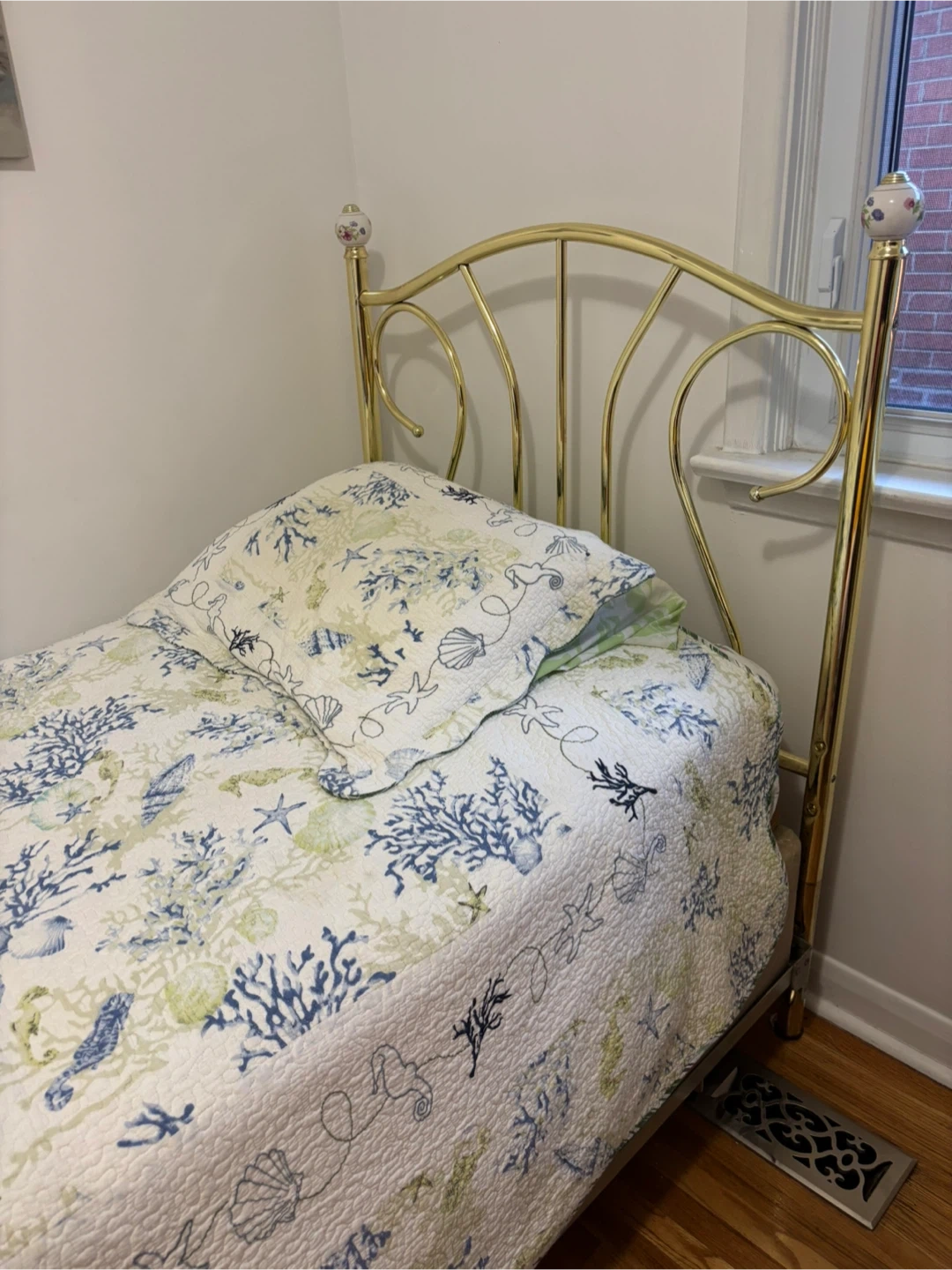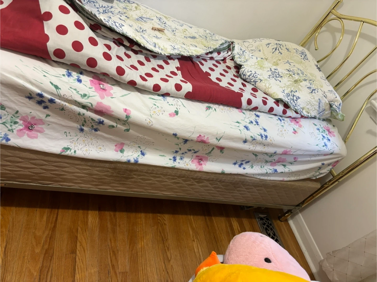 65Selling a gold-coloured metal twin bed frame. It's in good condition and would look great in any bedroom! The frame has a lovely, classic design that adds a touch of elegance to the room Mattress included Cash only Puck it up only in Rathburn rd Etobicoke