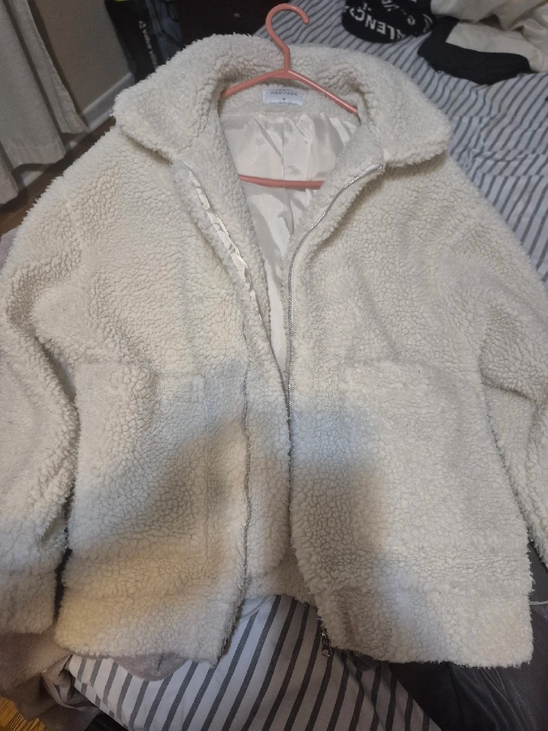 809Cozy up in this Urban Heritage sherpa jacket! It's a size medium and features a soft, fluffy texture that's perfect for chilly days. The jacket is in great condition and ready to keep you warm this season