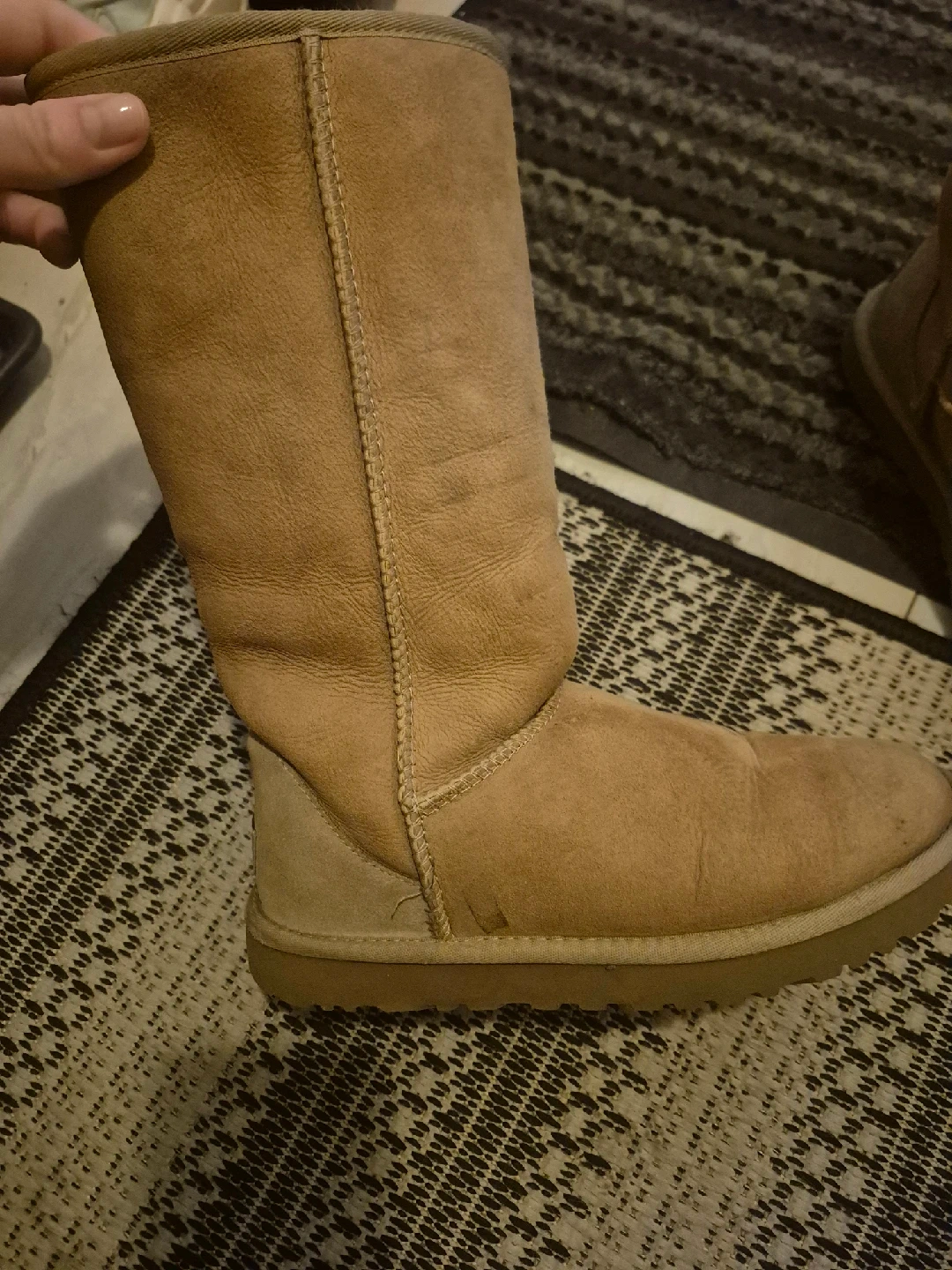 809Selling a pair of UGG Australia Classic Tall boots. They're in good condition and super comfy for the cold weather! The boots are a light tan colour and have the classic UGG sheepskin lining.