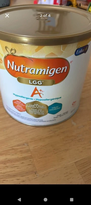 Selling cans of Nutramigen A+ LGG hypoallergenic formula. It's designed for babies 0+ months with cow's milk protein allergy and colic symptoms. The expiry date is 2027 jan 01