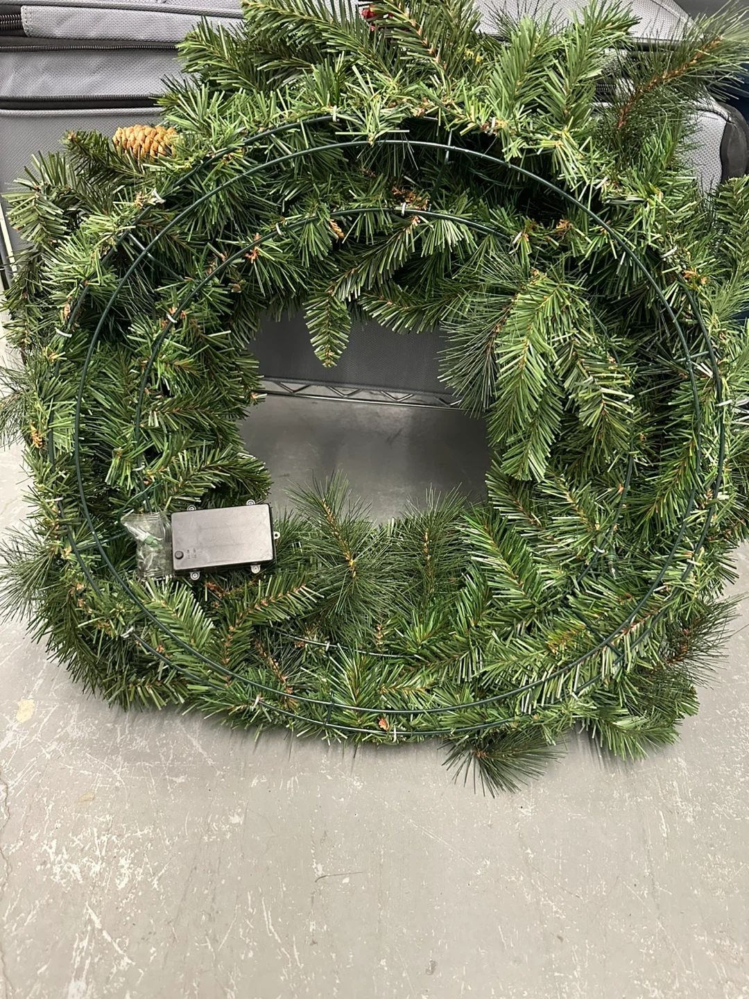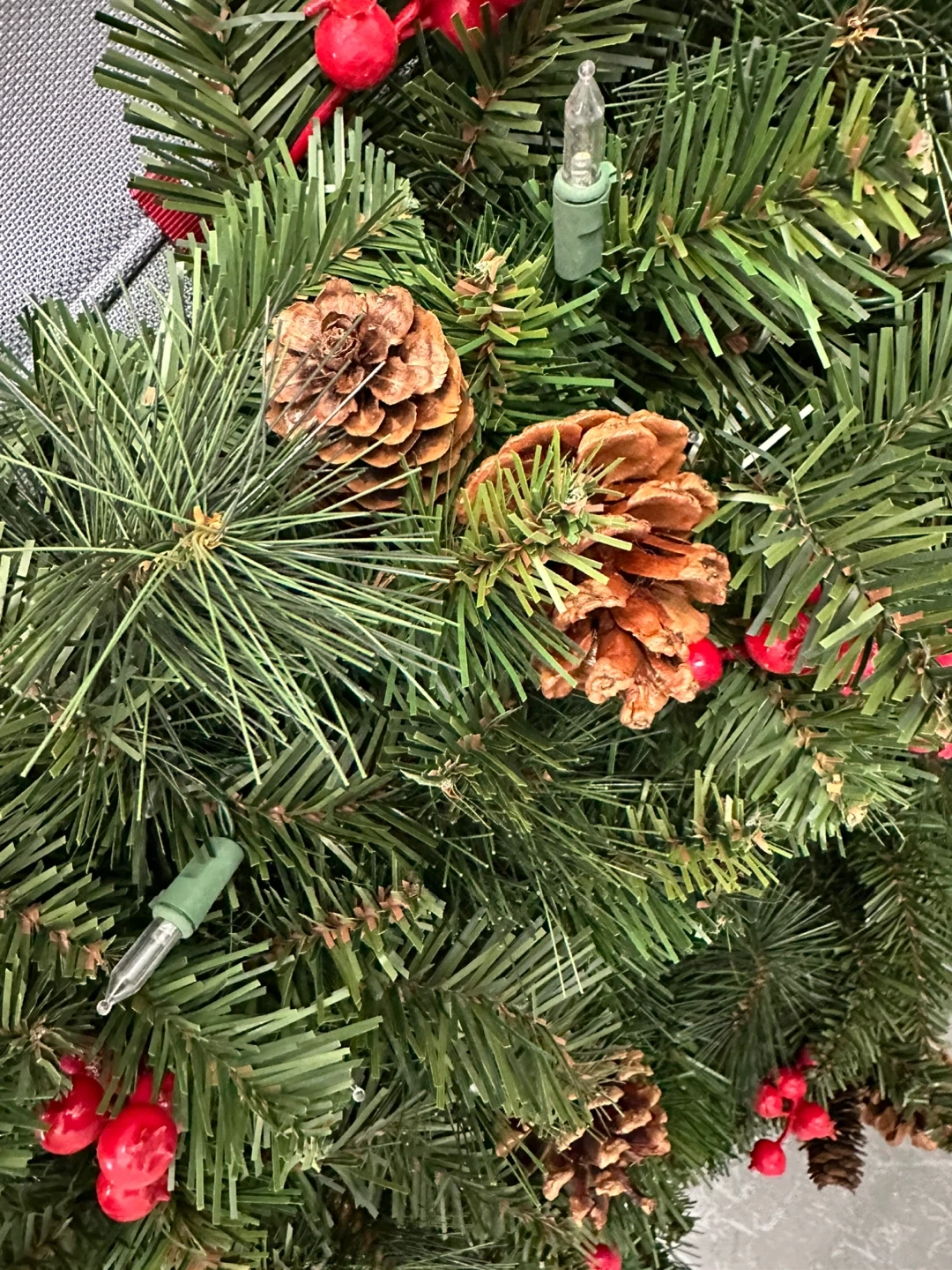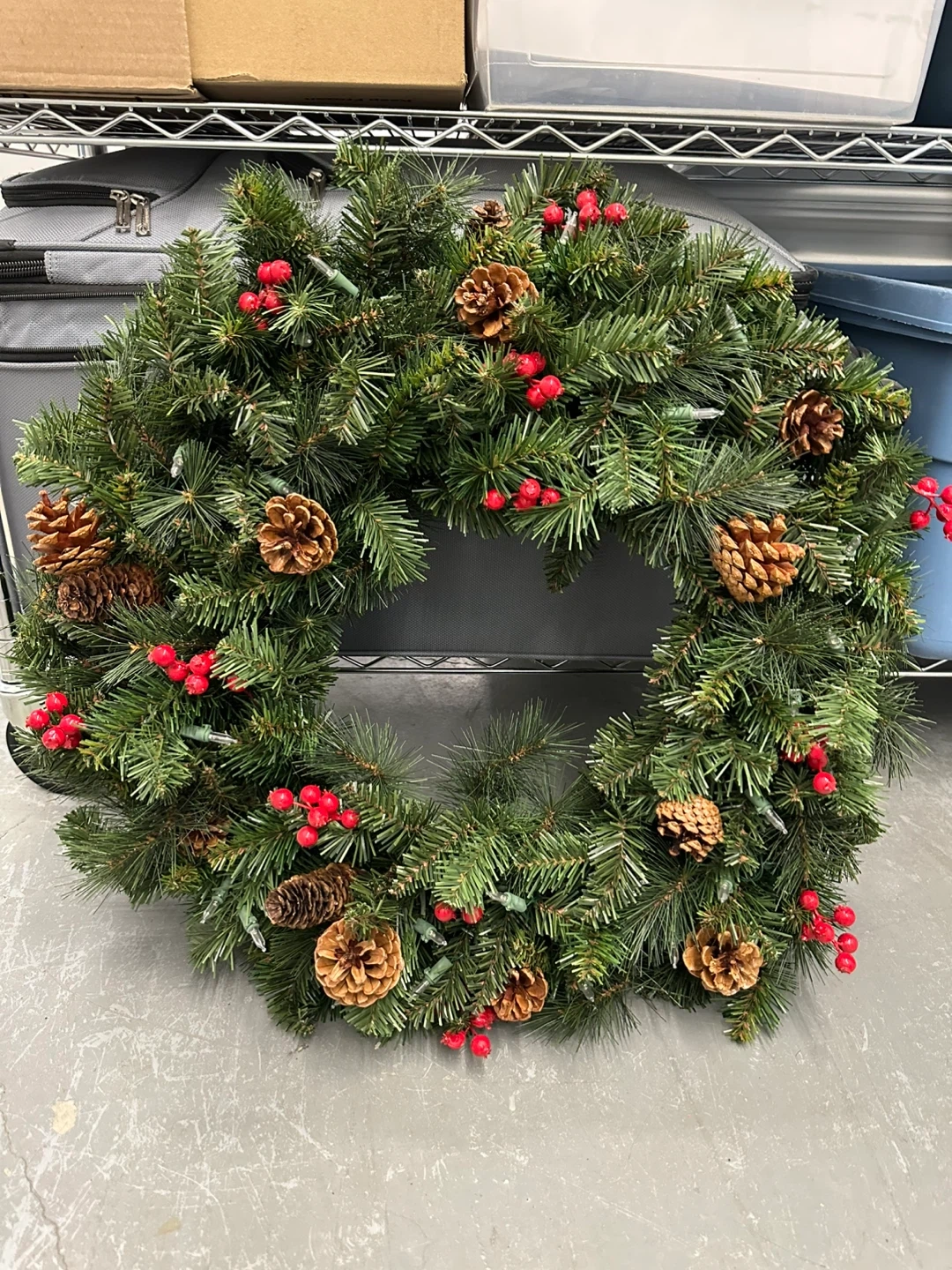 Christmas Wreath w/Lights Pinecones & Berries - 22”