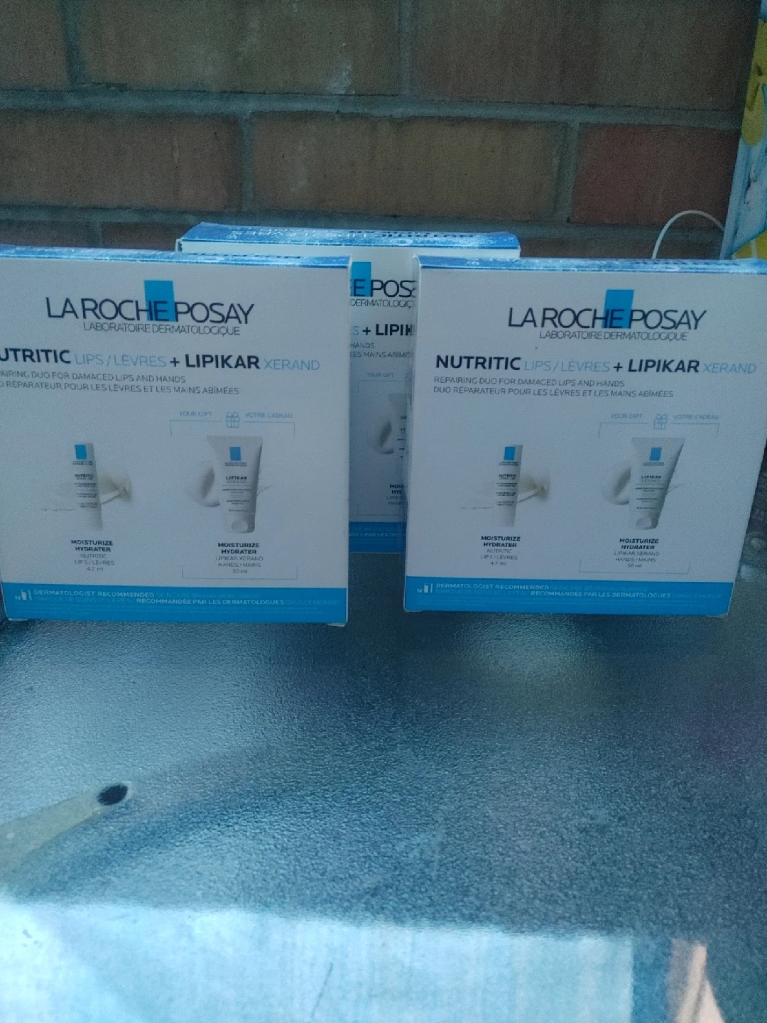 Selling 3 La Roche-Posay Nutritic Lips + Lipikar Xerand duo for repairing damaged lips and hands. It includes a moisturizing lip balm (4.7 ml) and hand cream. Perfect for keeping your skin hydrated!