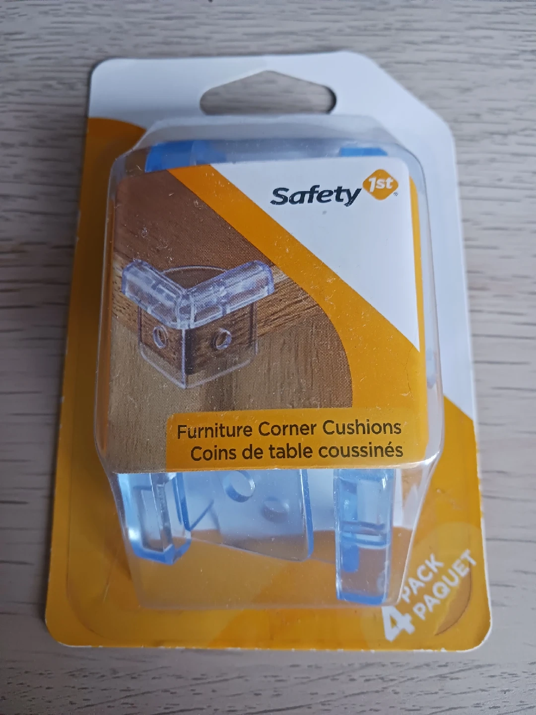 I'm selling a pack of Safety 1st furniture corner cushions. This pack includes 4 cushions to help protect your little ones from sharp corners. They are clear in colour and easy to install. Perfect for tables, shelves, and other furniture!