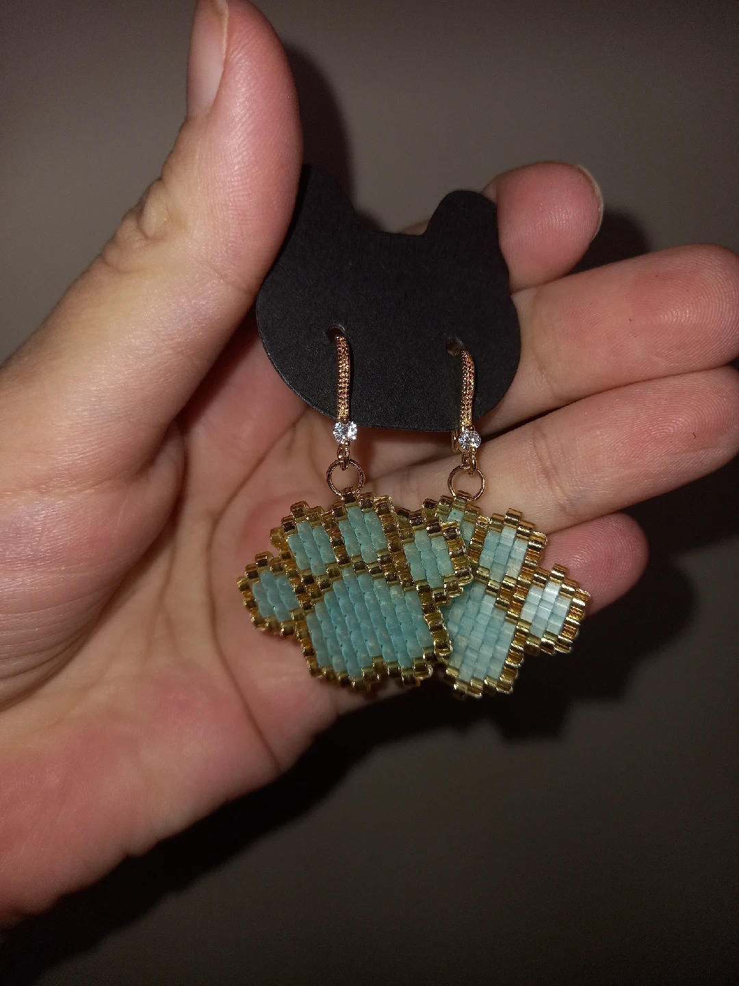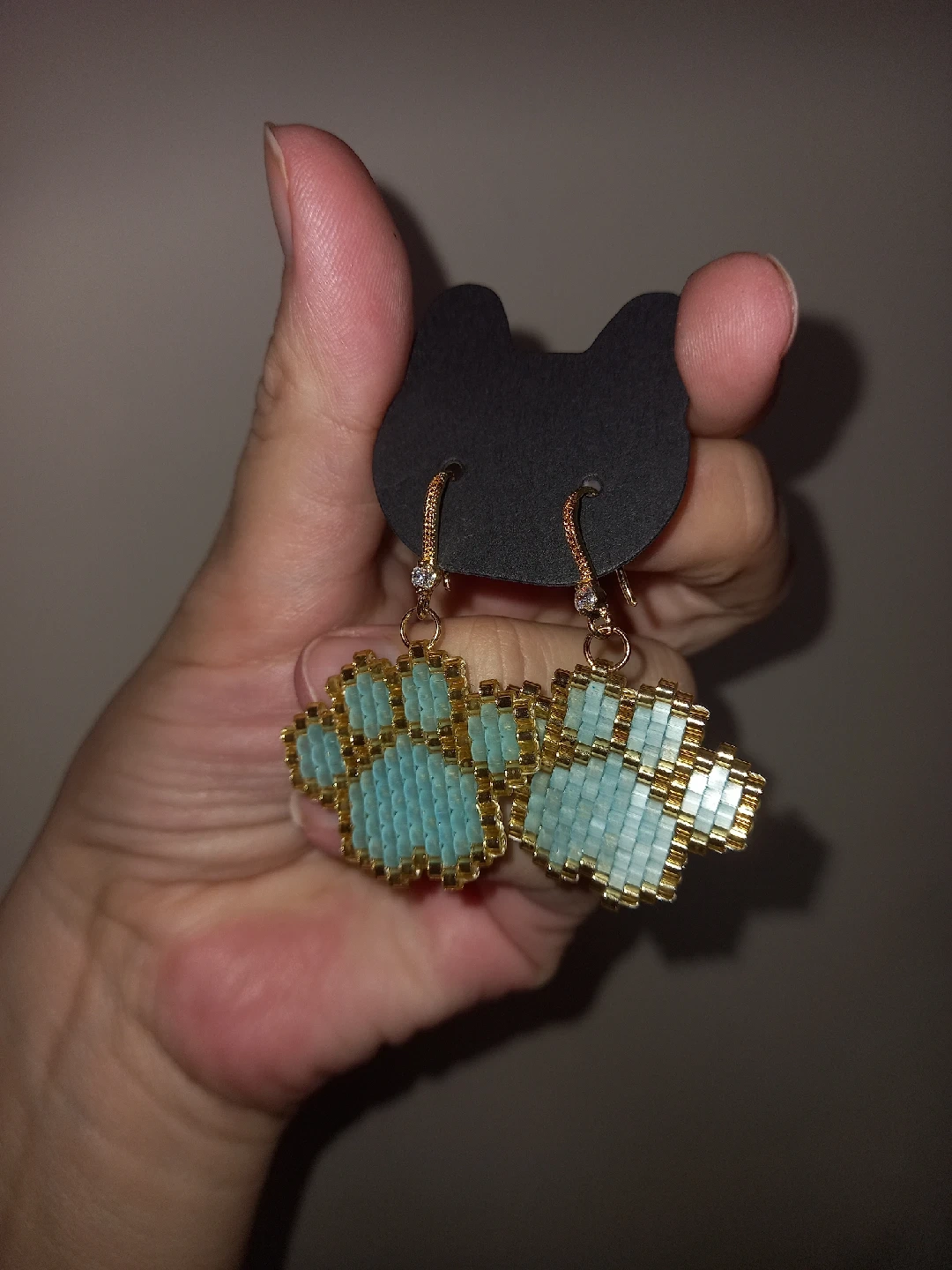 18K gold plated earrings ✨️ Selling a pair of super cute handmade earrings! They feature a paw print design made with light blue and gold beads. Perfect for any animal lover!