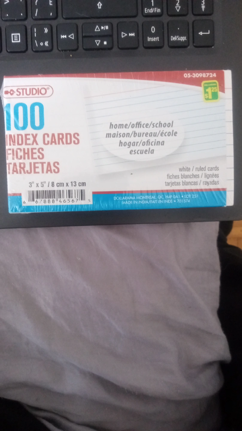 I'm selling a brand new pack of Studio index cards! The size is 3" x 5" (8 cm x 13 cm). I bought this for $1.25 at Dollarama and the pack is still sealed