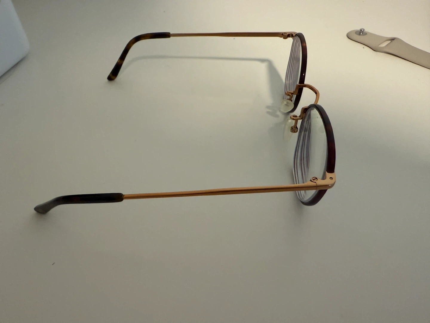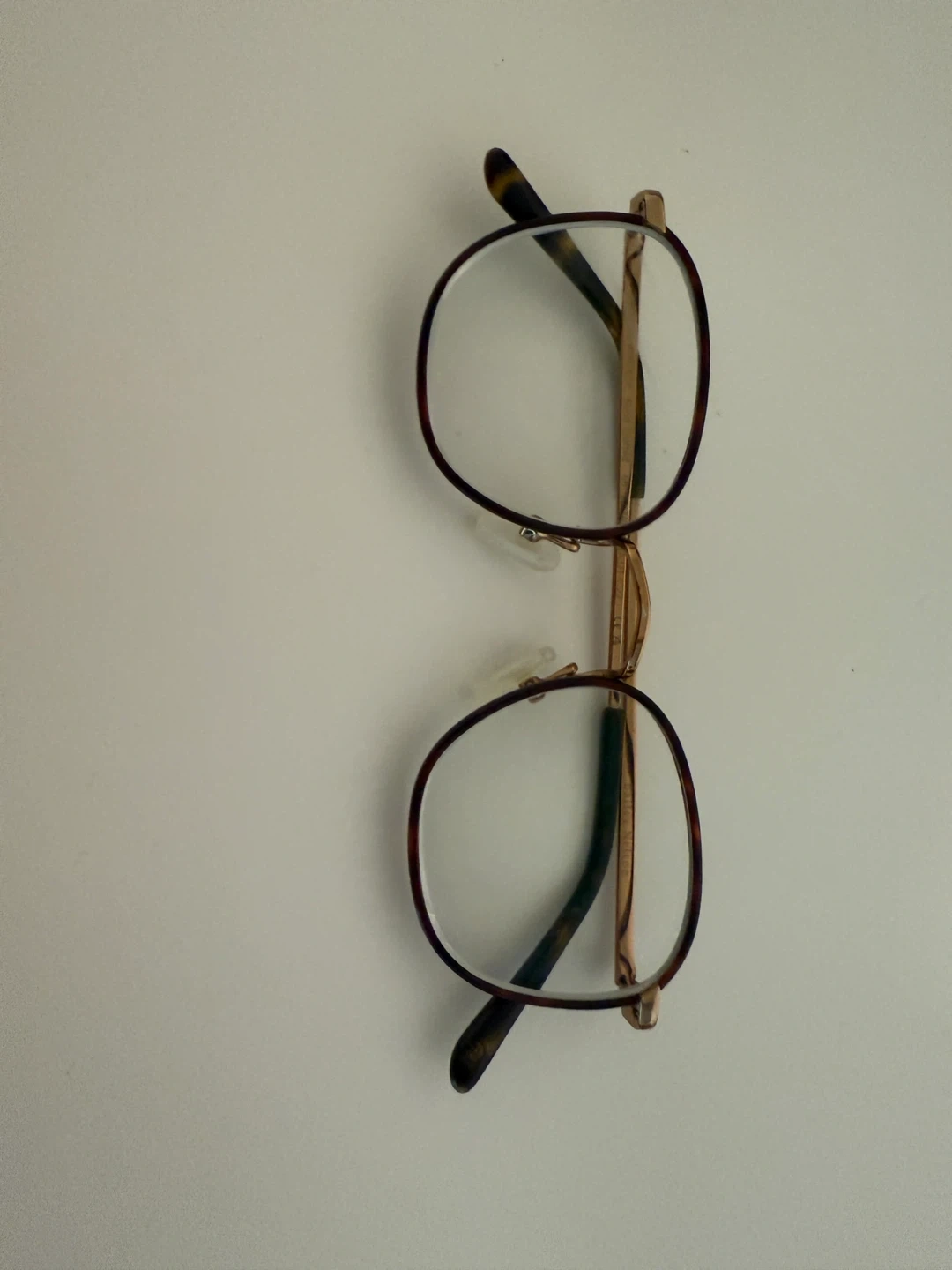 Selling a pair of eyeglasses with a stylish round frame! The frame is a combination of brown and gold, giving it a classic yet modern look. They are in great condition and ready for a new owner