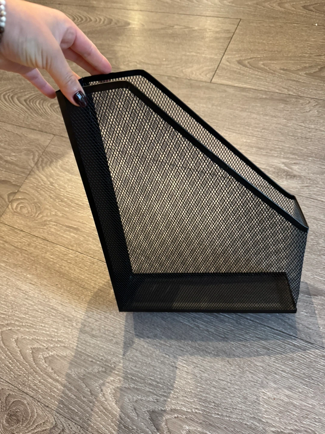 Buy & SellBlack Metal Mesh Wall File HolderBlack Metal Mesh Wall File Holder$2.50Selling a black metal mesh wall file holder! It's in great condition and perfect for organizing your documents or mail. W: 3” L: 10” H: 12”ConditionNewDimensions7 x 25 x 32 cm0 chats·0 favorites·3 viewsSELLERverifiedAngieSapperton961 reviewWHERE TO MEETSapperton Station