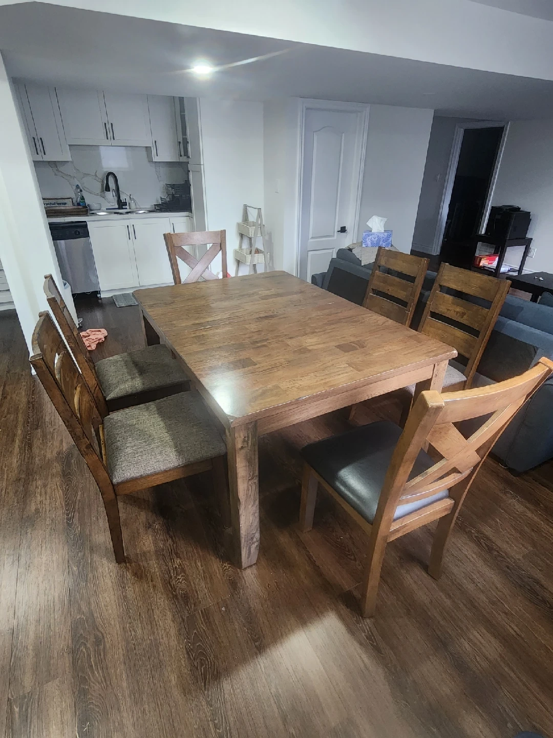 Selling a set of six dining chairs. They are in good condition and would be a great addition to any dining room!