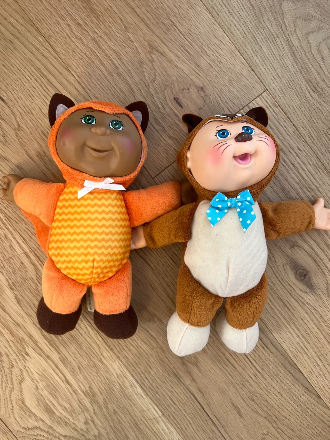 Selling a set of two adorable Cabbage Patch Kids plush dolls! One is dressed as a cute fox and the other as a bear. They're both in great condition and ready for a new home