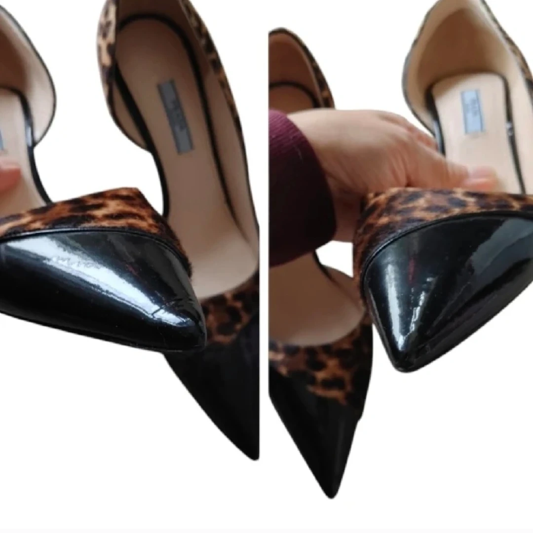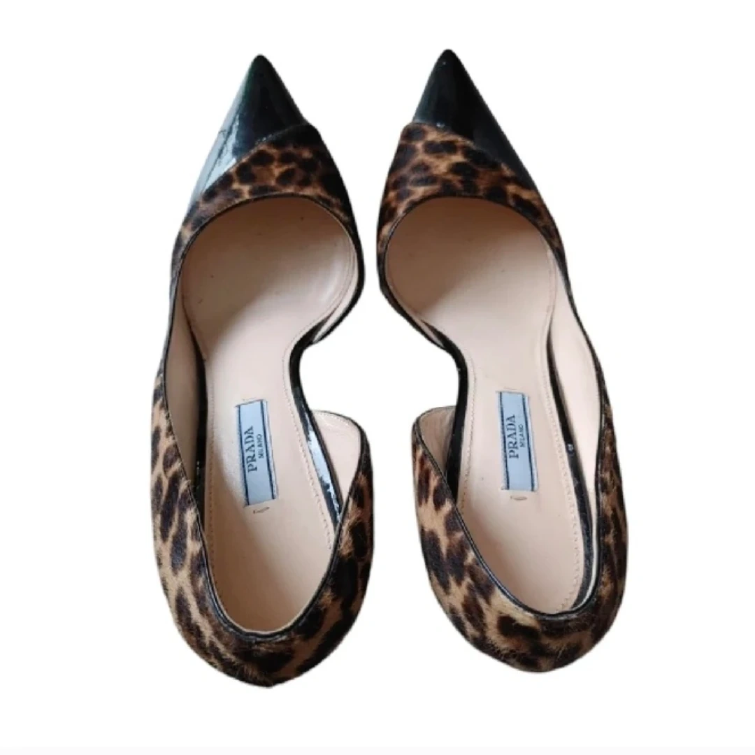 Prada Pony Hair Leopard Print Patent Leather Heels