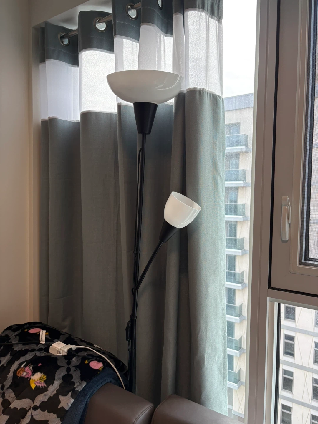 65Features: • Uplighter + adjustable reading light combo • Modern black and white design • Energy efficient and stable base Description: Fully functional, clean, and stylish. Great for living rooms or reading corners.