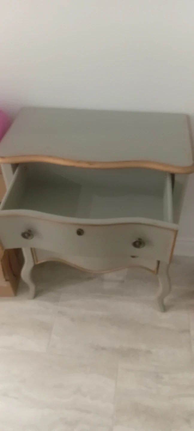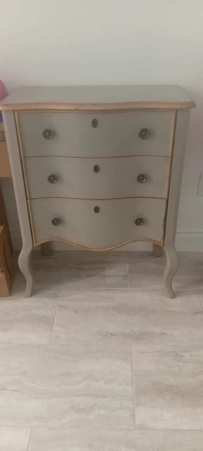 Selling a cute grey three-drawer chest. It's a lovely piece for any room and provides great storage. The chest is in good condition and ready for a new home!