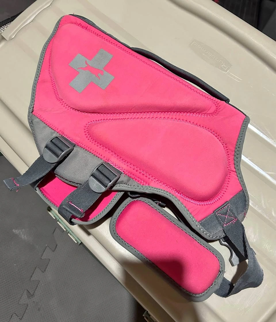 Slightly faded in colour but otherwise in great shape! Length of back: 15 inches (not intended to reach tail, designed to stop 1/2 way to 3/4 down the back)