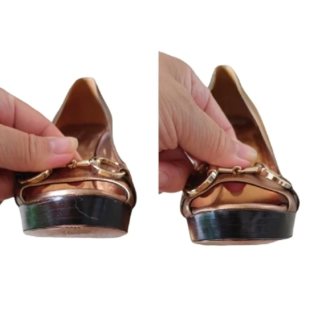 Authentic Gucci Metallic Gold Leather Horsebit Open Toe Platform Stiletto Heels.