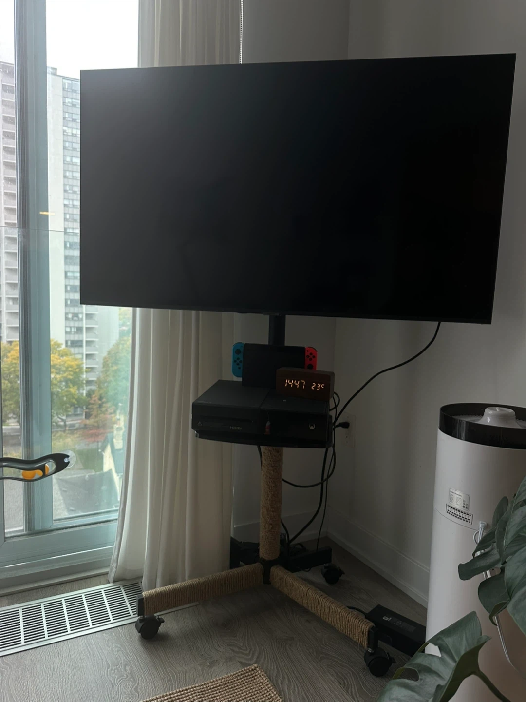 As you can see, I glued a cat scratcher to the TV stand’s pole using a hot glue gun. Please keep that in mind. You can remove it if you prefer.