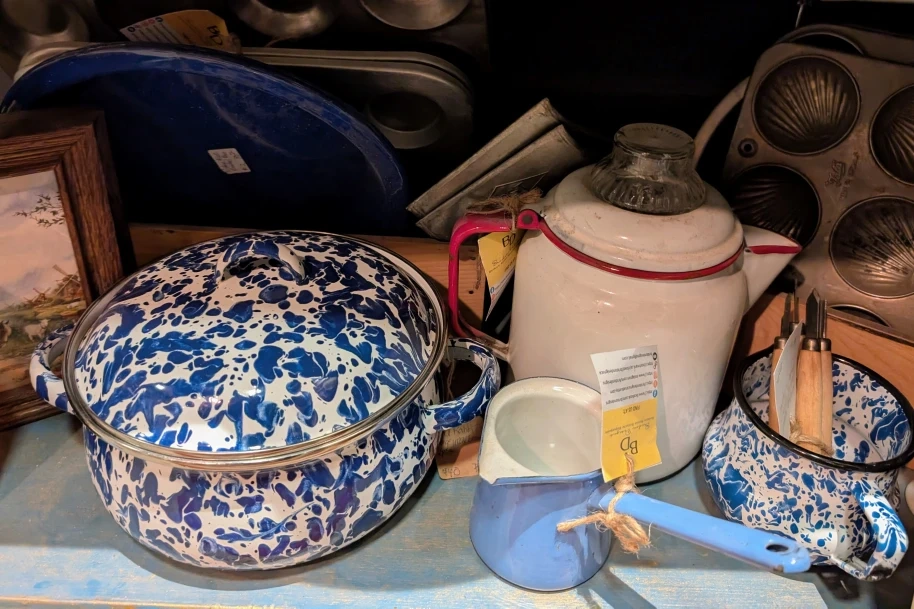 If you're looking to add a cottage touch to your decor, shop in person at our booth in The Old House Revival Company, lower level. Our decor options are a great way to add a cozy cottagecore feel to any home. We feature vintage prints, linens, books, kitchen tools, needlepoint, original oil and acrylic paintings. We also carry basics to create your own framed prints and gallery walls including empty vintage frames, sheet music, antique postcards, sepia photos, ribbons and laces.