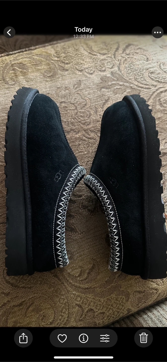 Cozy UGG Tasman slippers in black! These are super comfy and perfect for wearing around the house. They're in great condition and ready for a new home