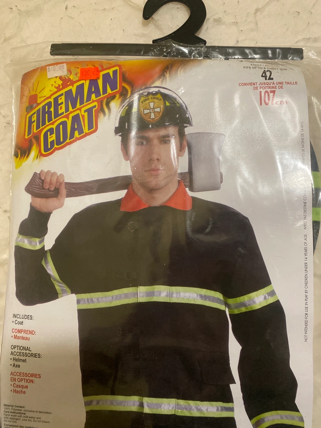 I'm selling a brand new fireman coat costume, still in its original packaging! The size is 42.
