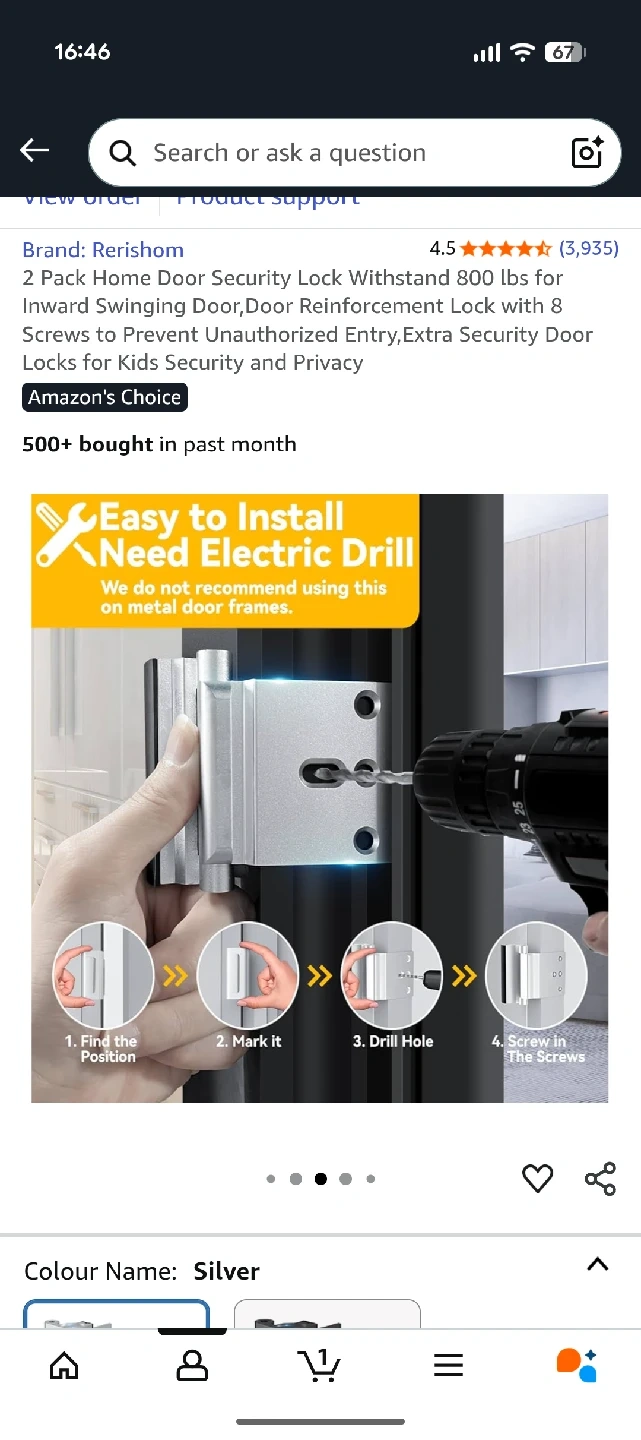 10never used. Selling a 2-pack of Rerishom home door security locks in silver. These locks are designed to withstand 800 lbs of force for inward swinging doors. Easy to install with wood screws and electric drill or screwdriver.