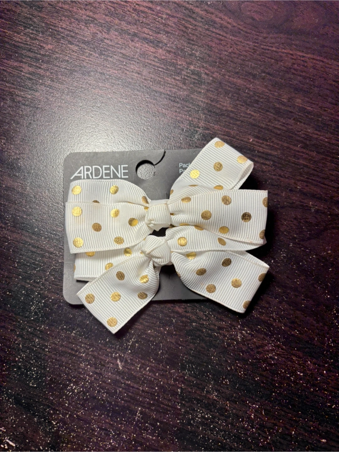 Super cute Ardene hair bow! It's white with gold polka dots. Perfect for adding a little flair to your hairstyle πβ¨