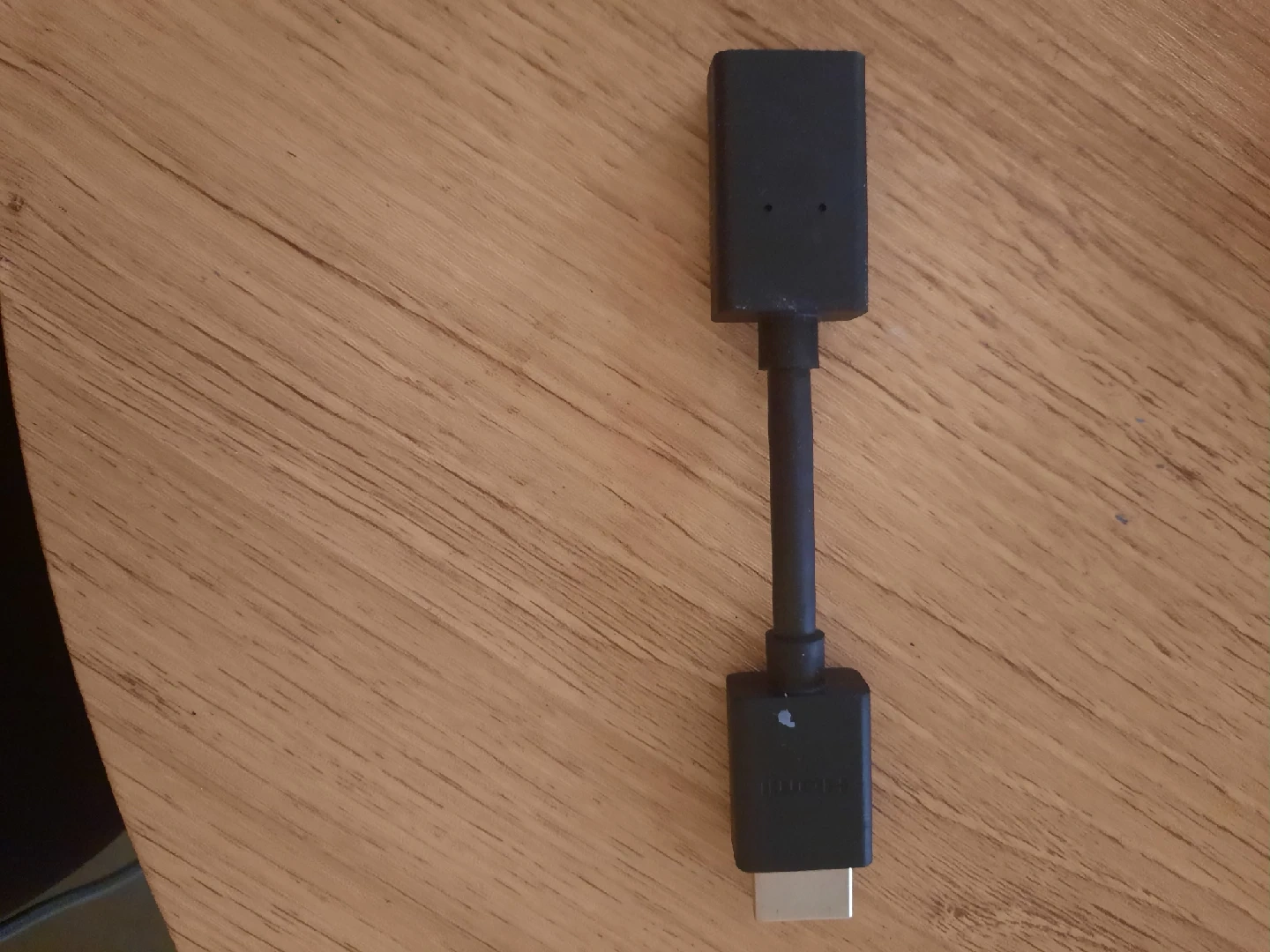 object shown is an HDMI extension cable or adapter, specifically a male-to-female HDMI extender. It is used to connect an HDMI device, such as a streaming stick, to a television or monitor when the device itself is too large to fit in the available space around the HDMI port.