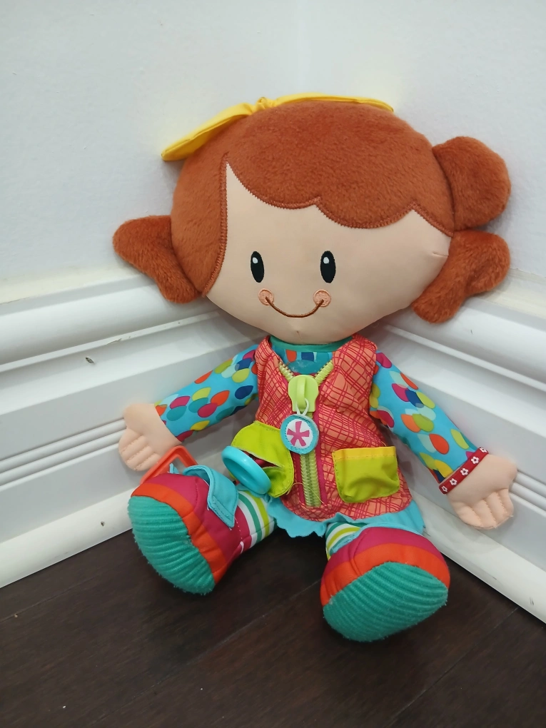 This is a Lamaze My Friend Emily doll. It has a lot of cute details and textures to explore, perfect for little ones!