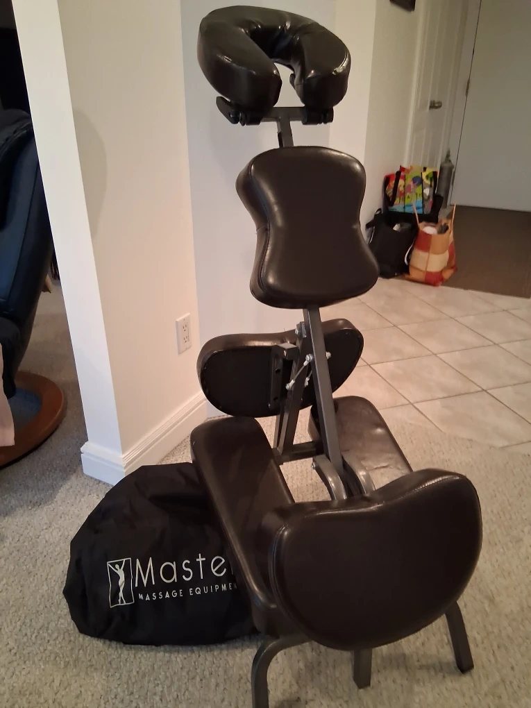 Selling a portable massage chair from Master Massage Equipment. It's in great condition and comes with a carrying case for easy transport and storage. Brand new, never used!