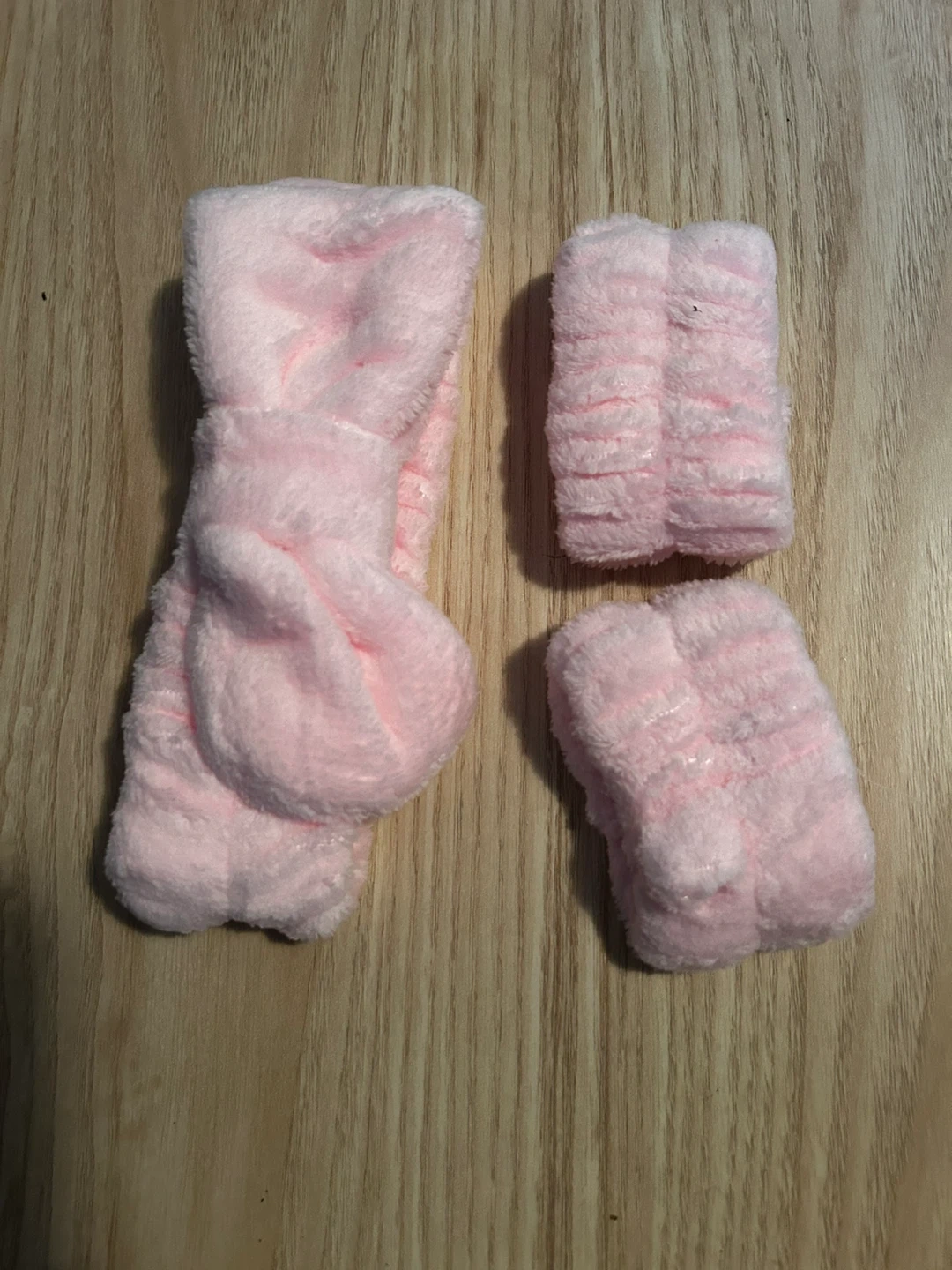 Selling a cute set of hair accessories! Includes claw clips, hair ties, a headband, and wristbands. All items are pink!