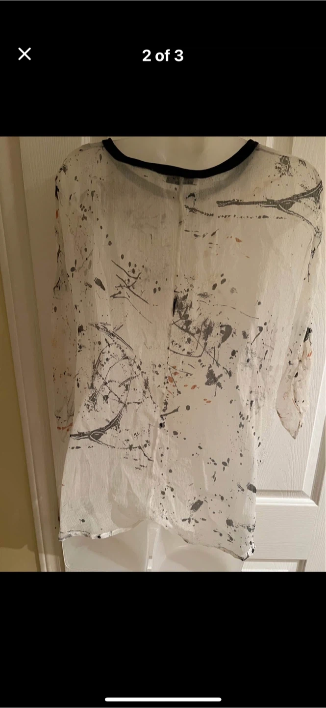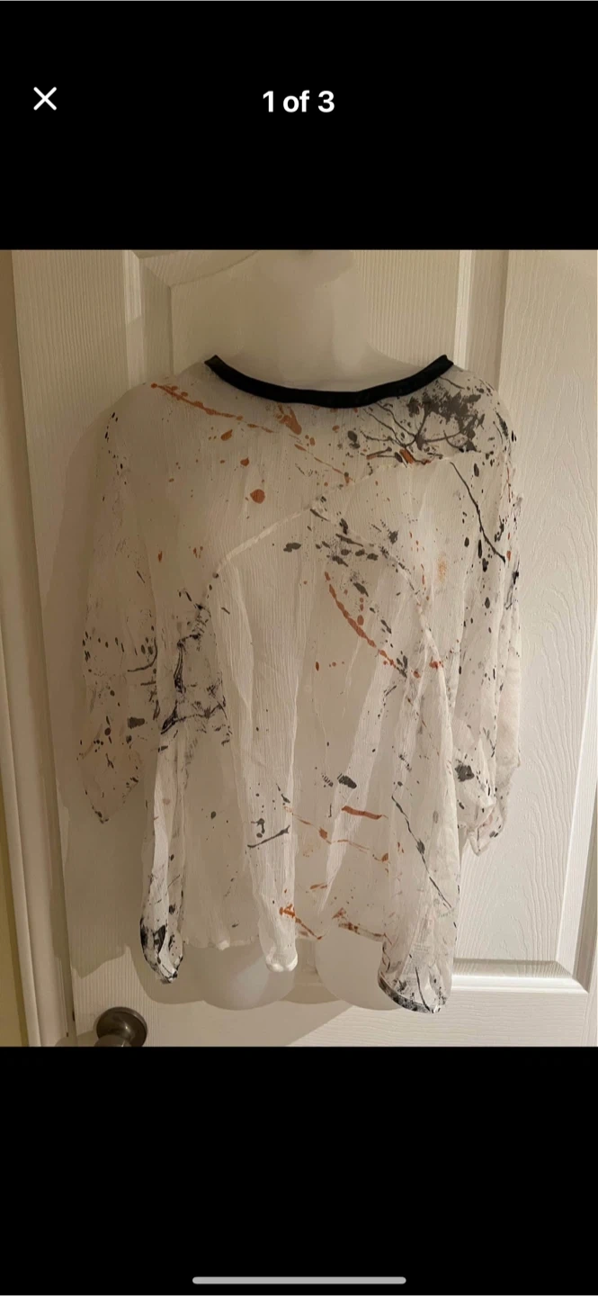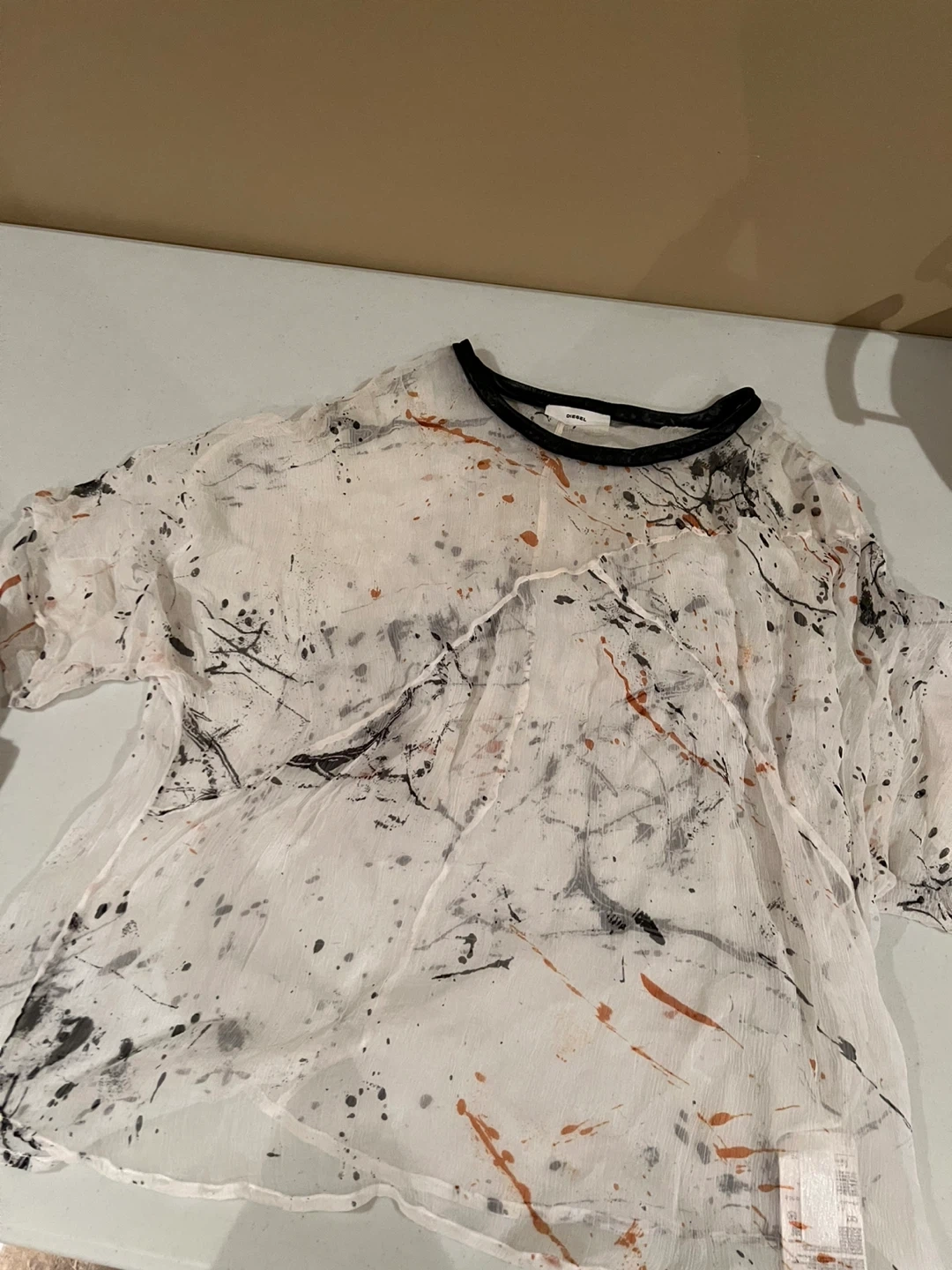178Here's a Diesel top in size XXS! It's made of 100% viscose and has a unique splatter design. Perfect for adding a bit of edge to your wardrobe