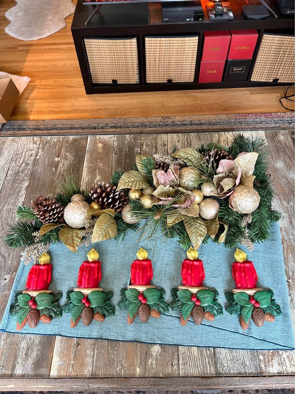 Christmas Candles Set of 5 Vintage Wall Mount Hanging