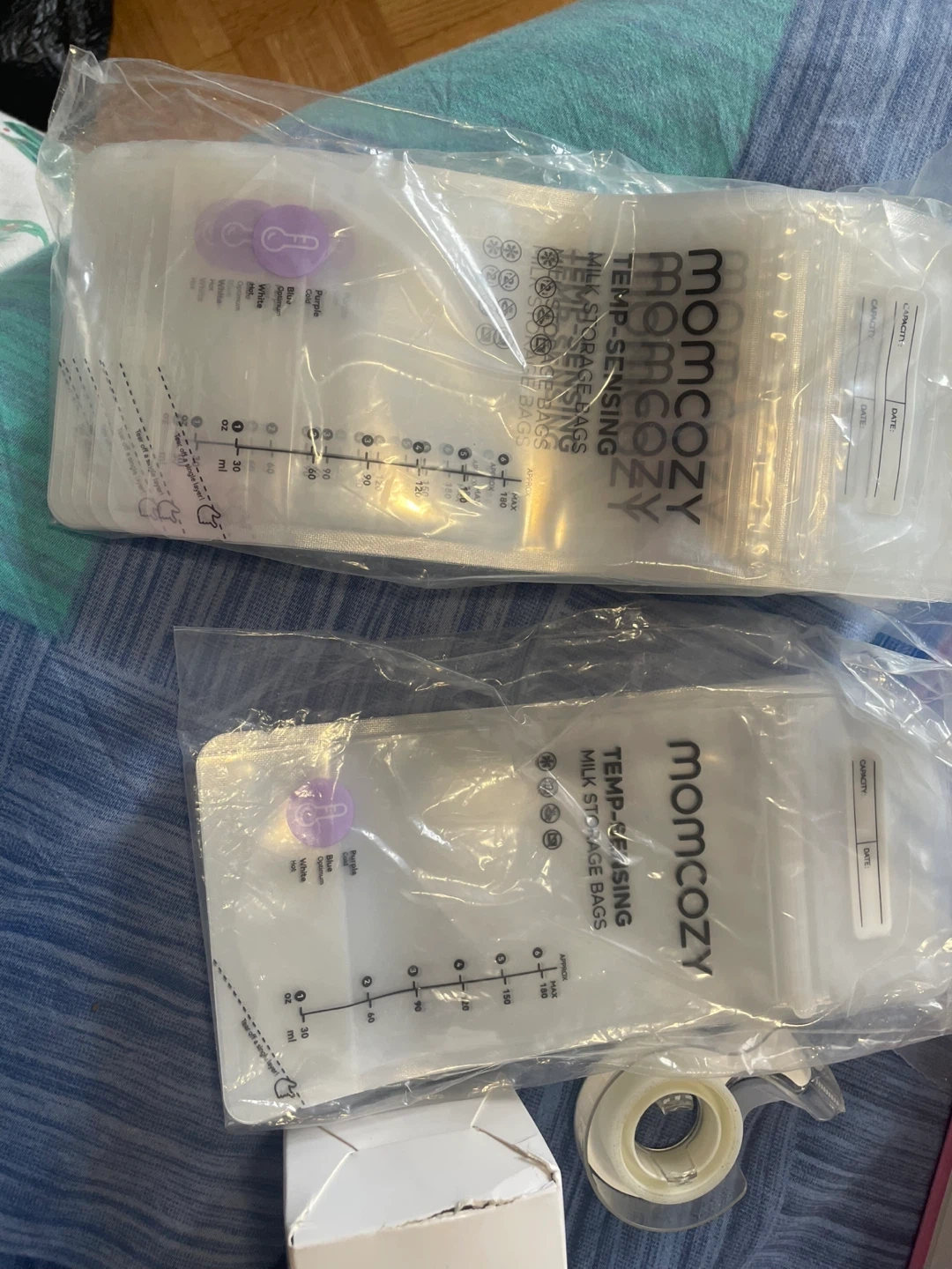 106Selling a pack of Momcozy temp-sensing milk storage bags! These bags are designed to help you store breast milk safely and conveniently. They feature a temperature-sensing indicator that changes colour to let you know when the milk is at the right temperature for your little one They are roughly 120-150 bags
