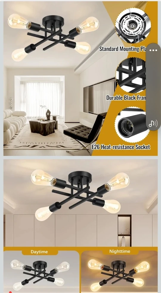 85Selling a black Sputnik ceiling light fixture! It features a durable black frame and E26 heat-resistance sockets. It also has a standard mounting plate. Comes in its original box