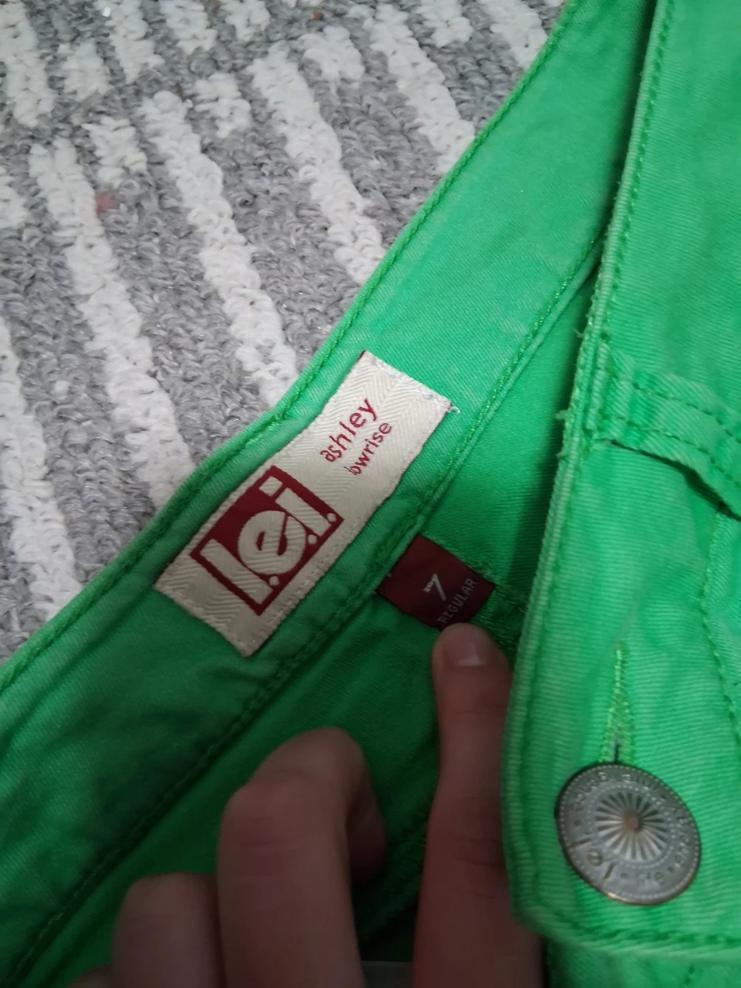 Selling a pair of LEI Ashley lowrise shorts in a vibrant green colour! They're a size 7 and in great condition, ready for a new home