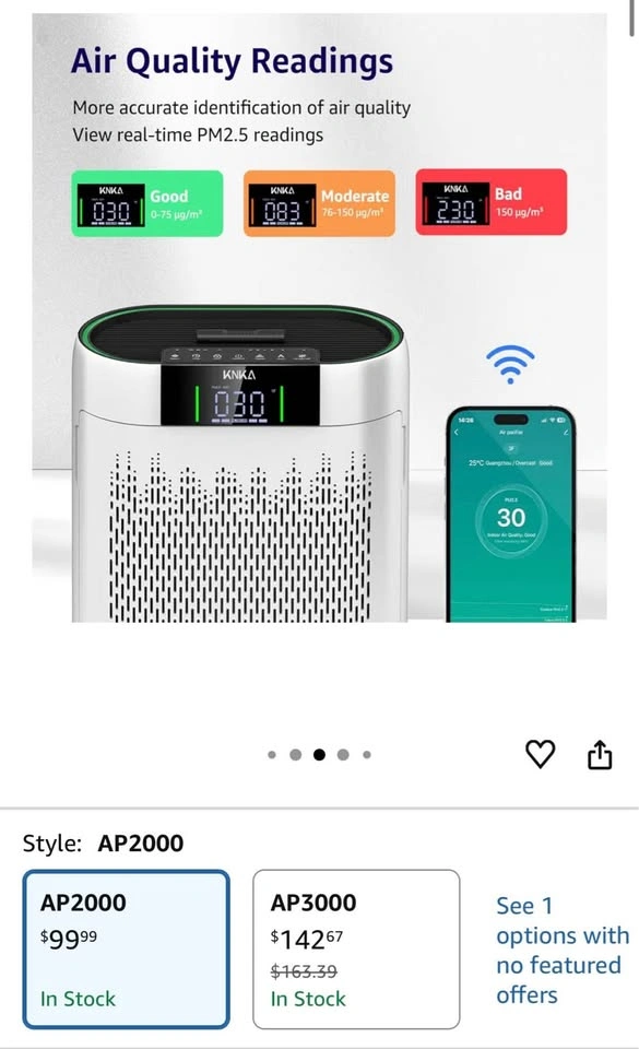 Air Purifiers for Home Large Room Bedroom up to 1740 Ft², Hepa Air Purifier with Air Quality Monitor, TRUE HEPA, Sleep Mode, Air Cleaner for Pets, Dust, Odor, Smoke, Pollen, AP2000