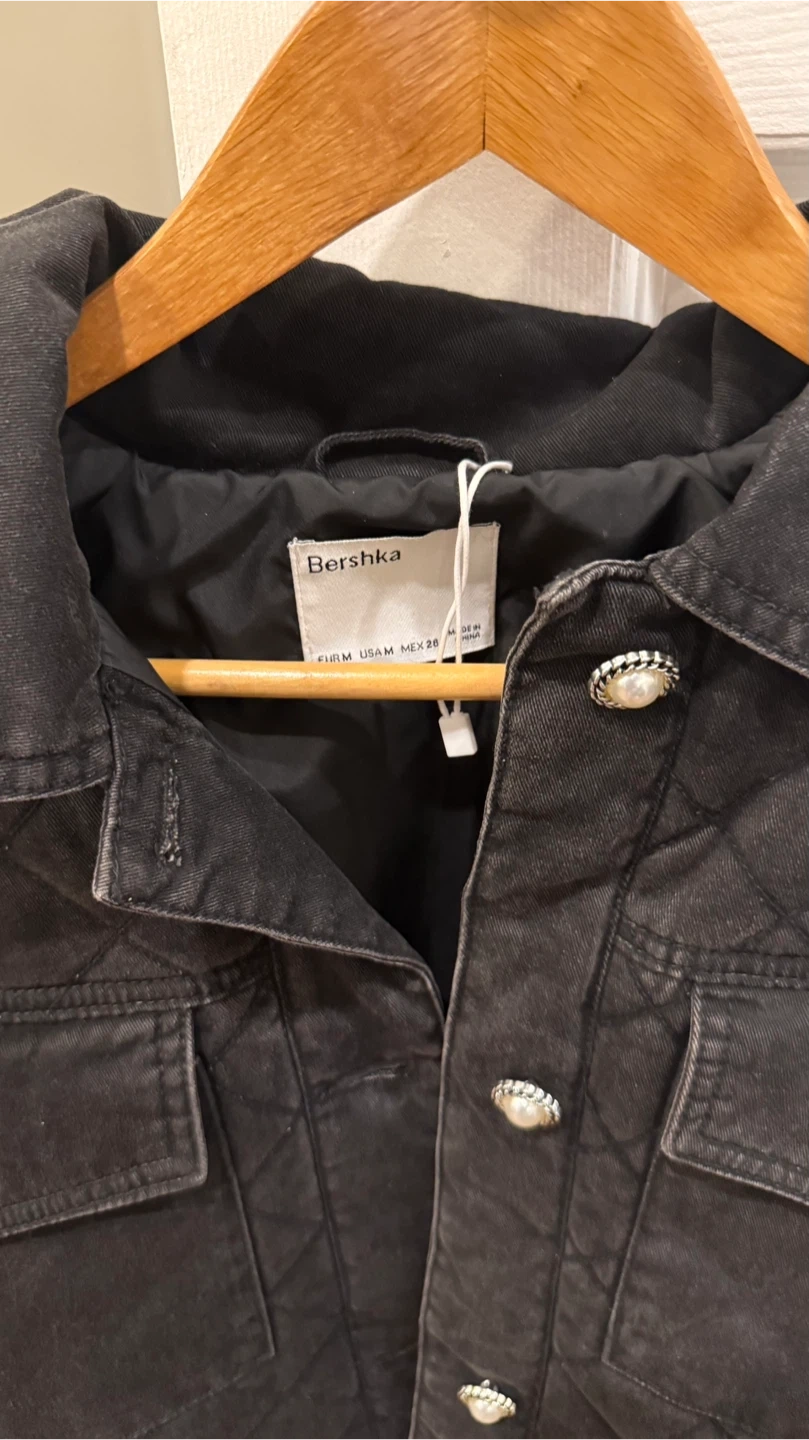12Selling a stylish Bershka black quilted jacket in size M! It's in great condition and ready for a new home. Perfect for adding a touch of chic to any outfit!