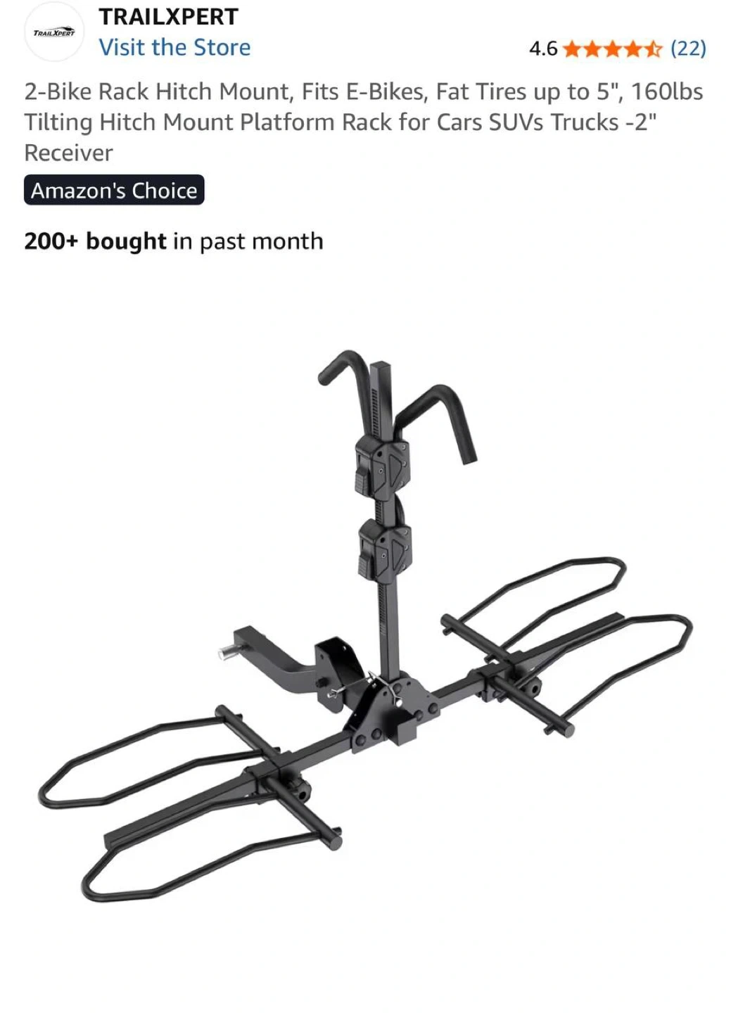 π΄ββοΈ TRAILXPERT 2-Bike Hitch Mount Rack β Fits E-Bikes & Fat Tires up to 5β