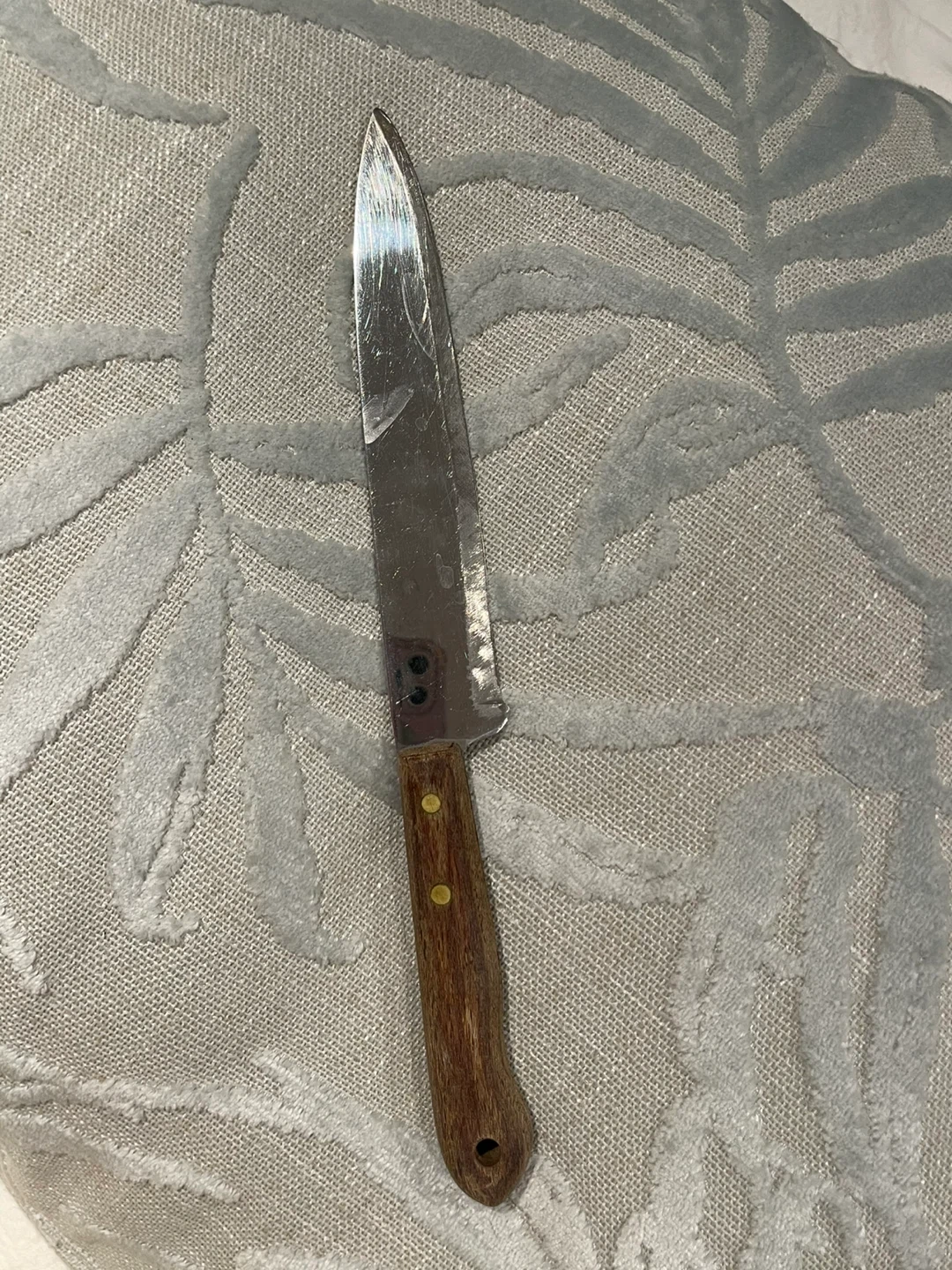 163Selling a Premier stainless steel knife, made in England. It has a wooden handle and is in used condition.