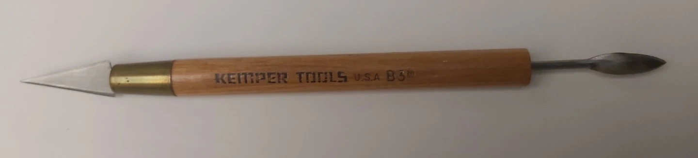 Kemper Tools B3 clay sculpting tool. Features a pointed blade on one end and a spoon end on the other. Wooden handle for comfortable grip. It's great for clay work, removing the seams from moulded ceramics or other sculpting projects!