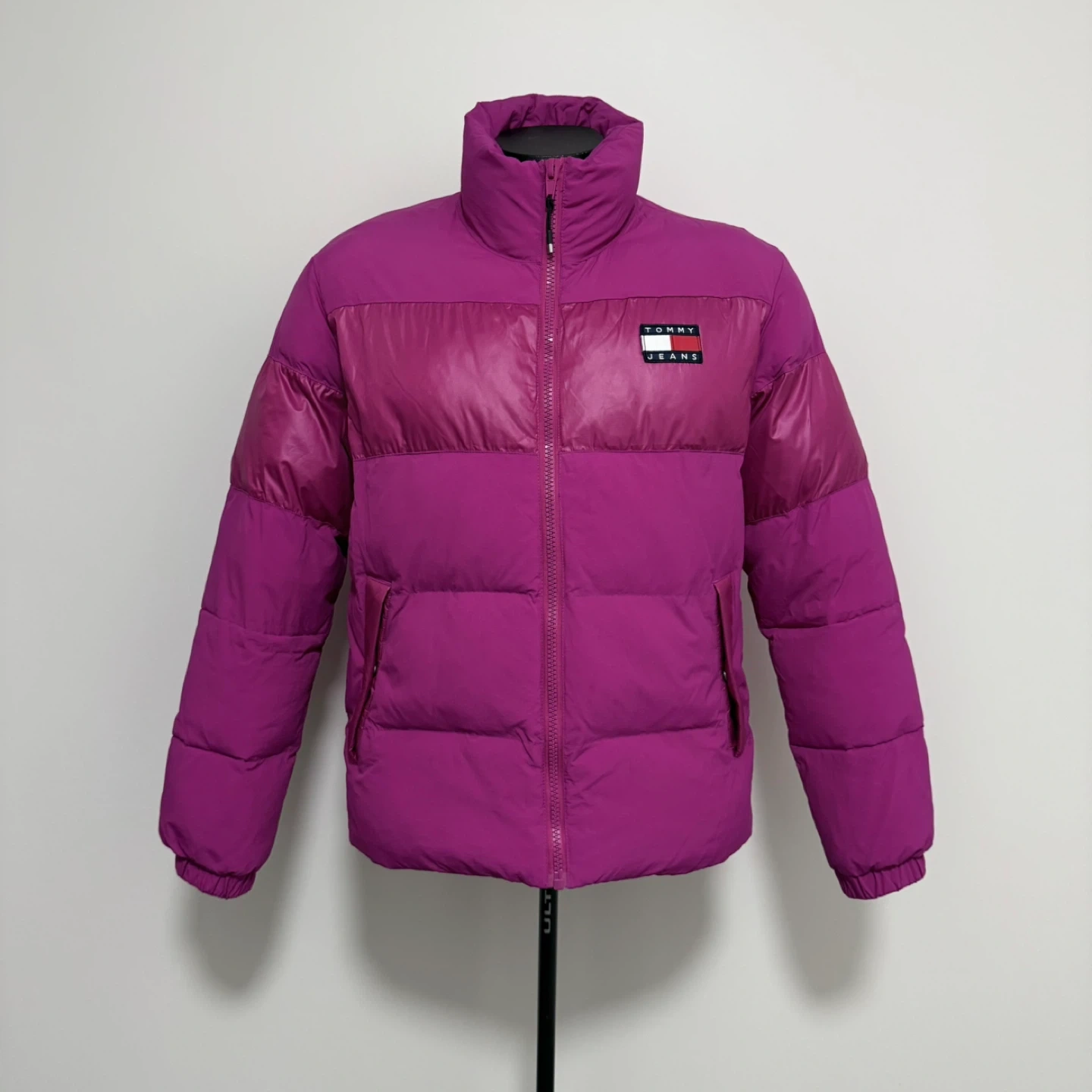Men’s Tommy Jeans winter fuchsia puffer coat, synthetic fill, in size Small. In clean, like-new condition