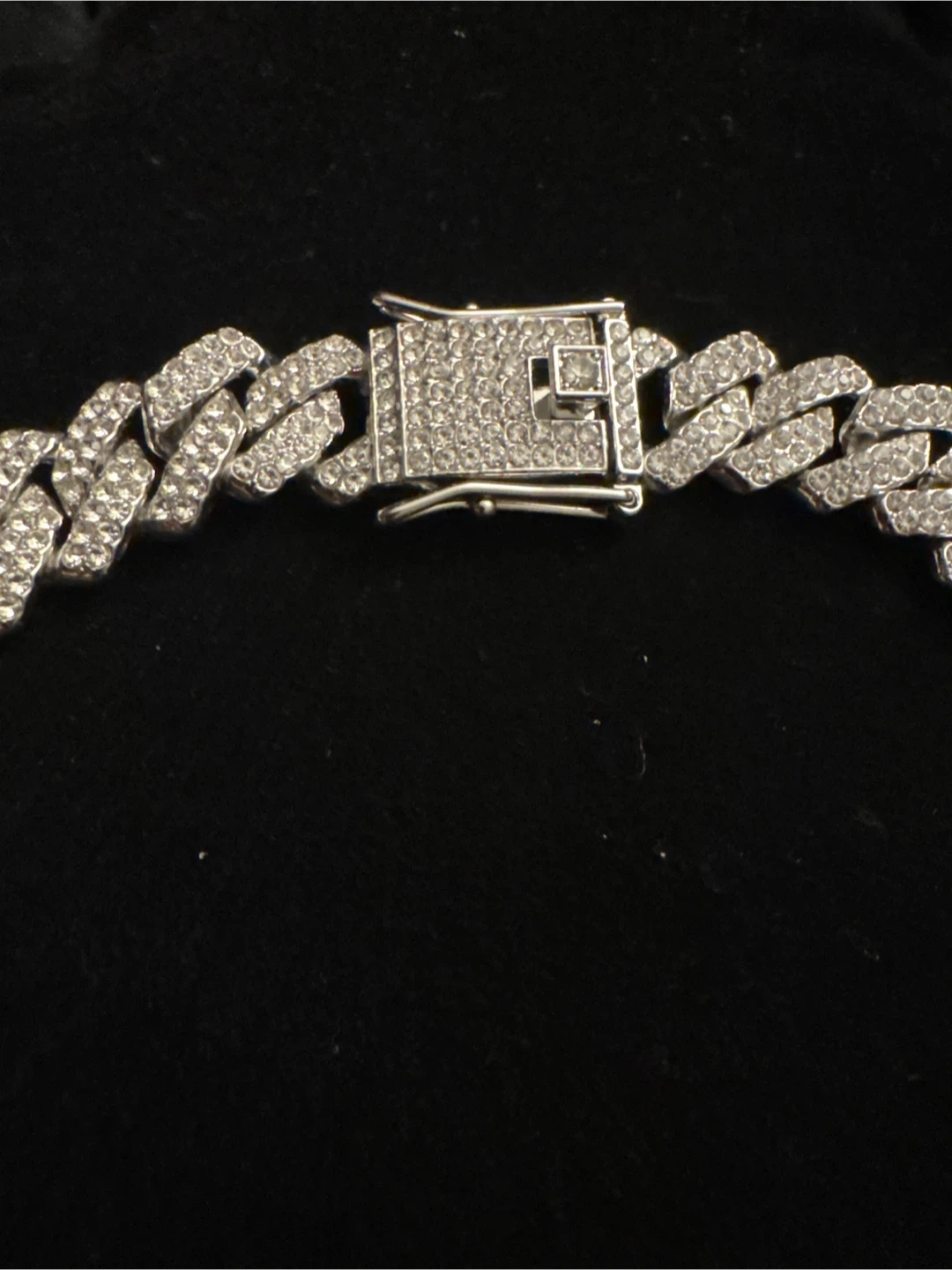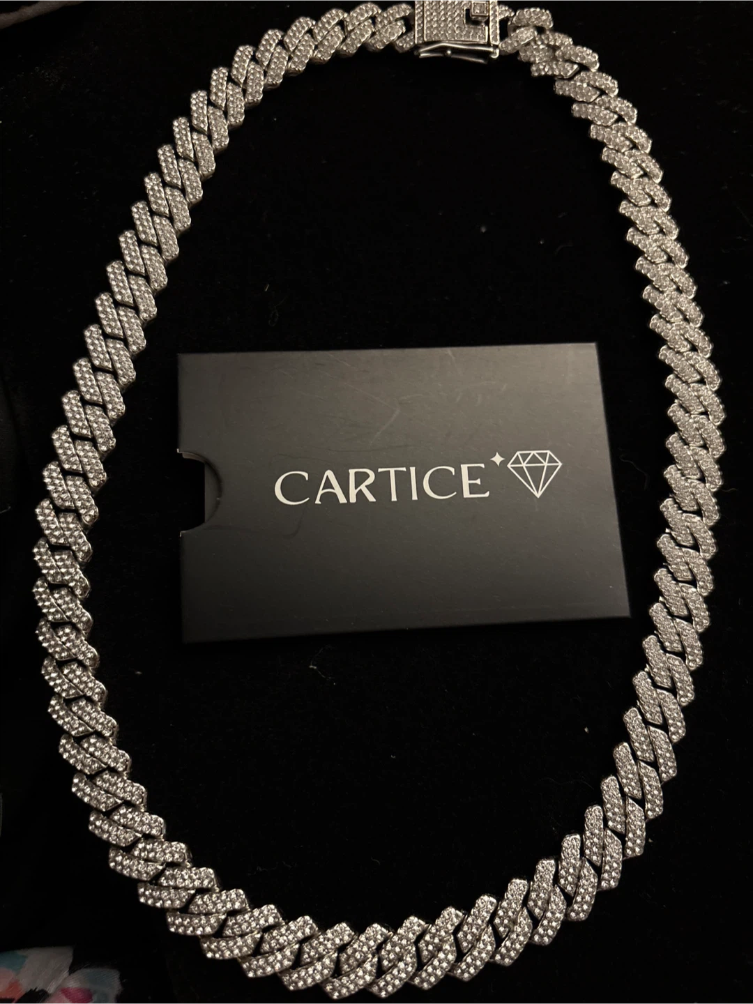 Selling a Cartice 14MM VVS Iced Out Cuban Chain. The chain is 18K white gold stainless Steel Moissonite features a detailed, iced-out Moissonite stones design. It's a stylish accessory to add to your collection! Comes with original Box and card