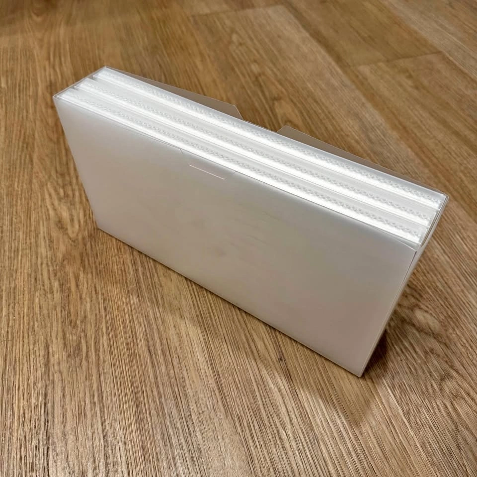 Clear photo album holder with built-in sleeves for storing photos. Holds a lot of prints while keeping them neat and protected. Perfect for organizing old photos, postcards, or small art prints.