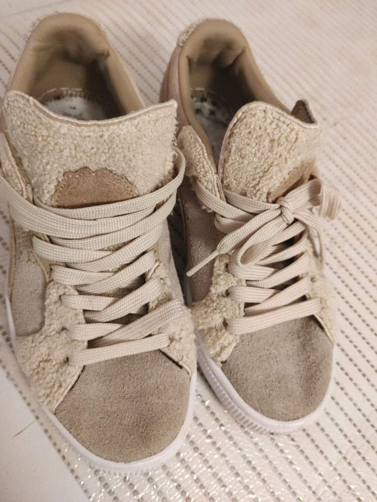 Selling a pair of Puma Suede sneakers in a cream colour. They're in used condition, as you can see from the photos. Great for everyday wear!