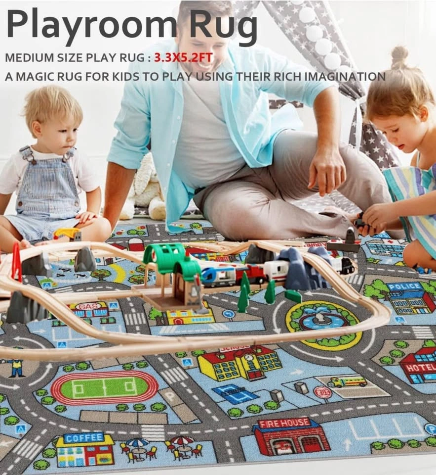 50Fun + Function in One Rug! This Blue City Life Kids Playmat (3'3" x 5'2") turns any floor into a mini adventure! ✅ Great for toy cars, trains, and pretend play. ✅ Soft surface for comfort and safe playtime. ✅ Ideal for bedrooms, classrooms, or daycares. Excellent shape and easy to vacuum. 📍Pickup: Highway 401 and Progress Ave