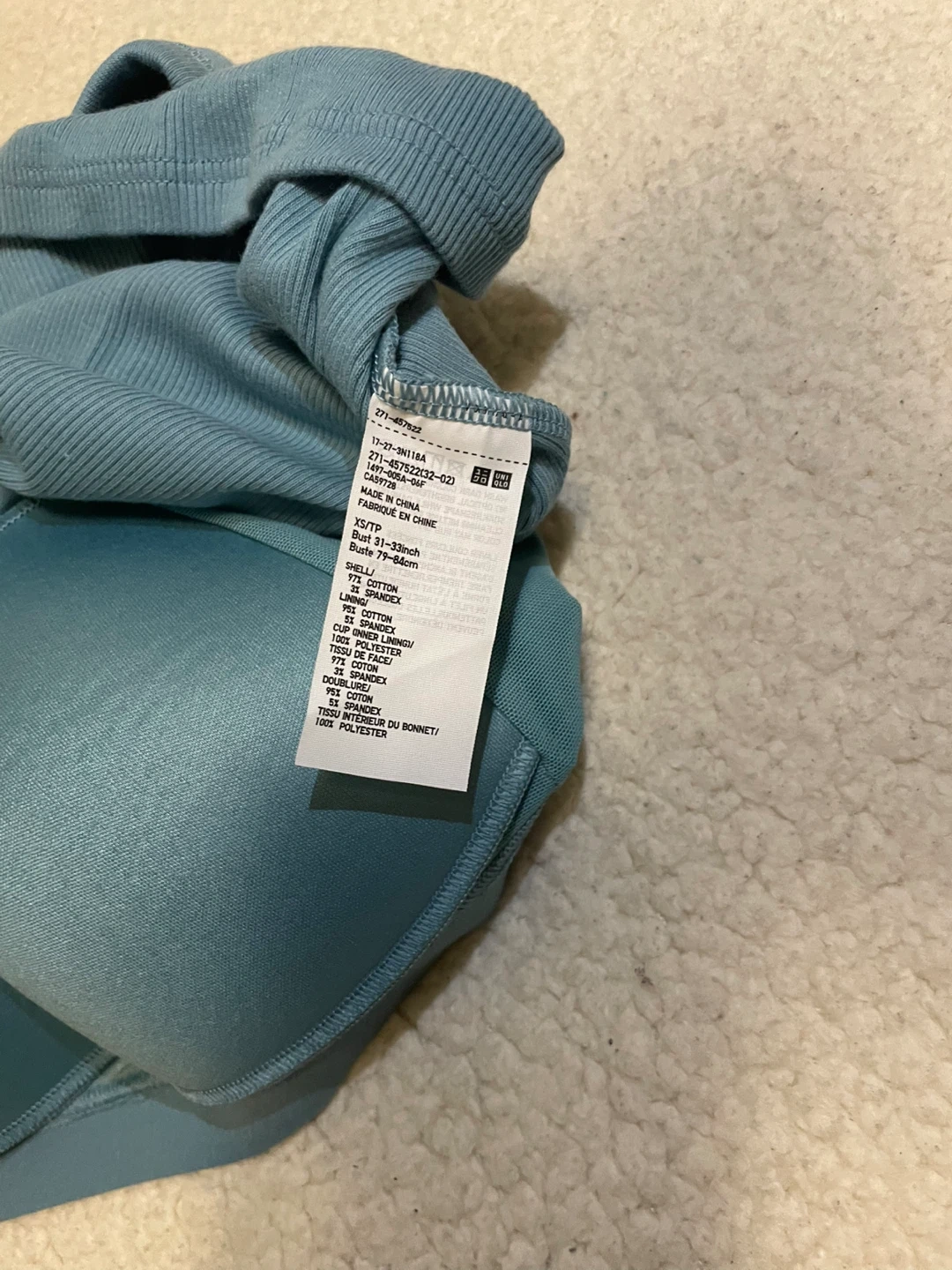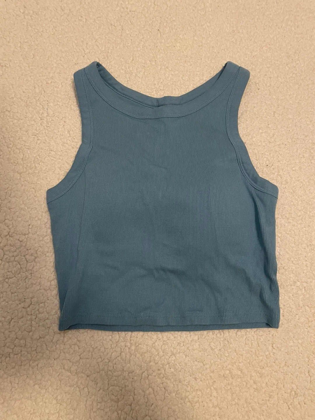 Selling a cute Uniqlo ribbed cropped tank top in size XS! It's a lovely blue colour and made of a comfy cotton blend.