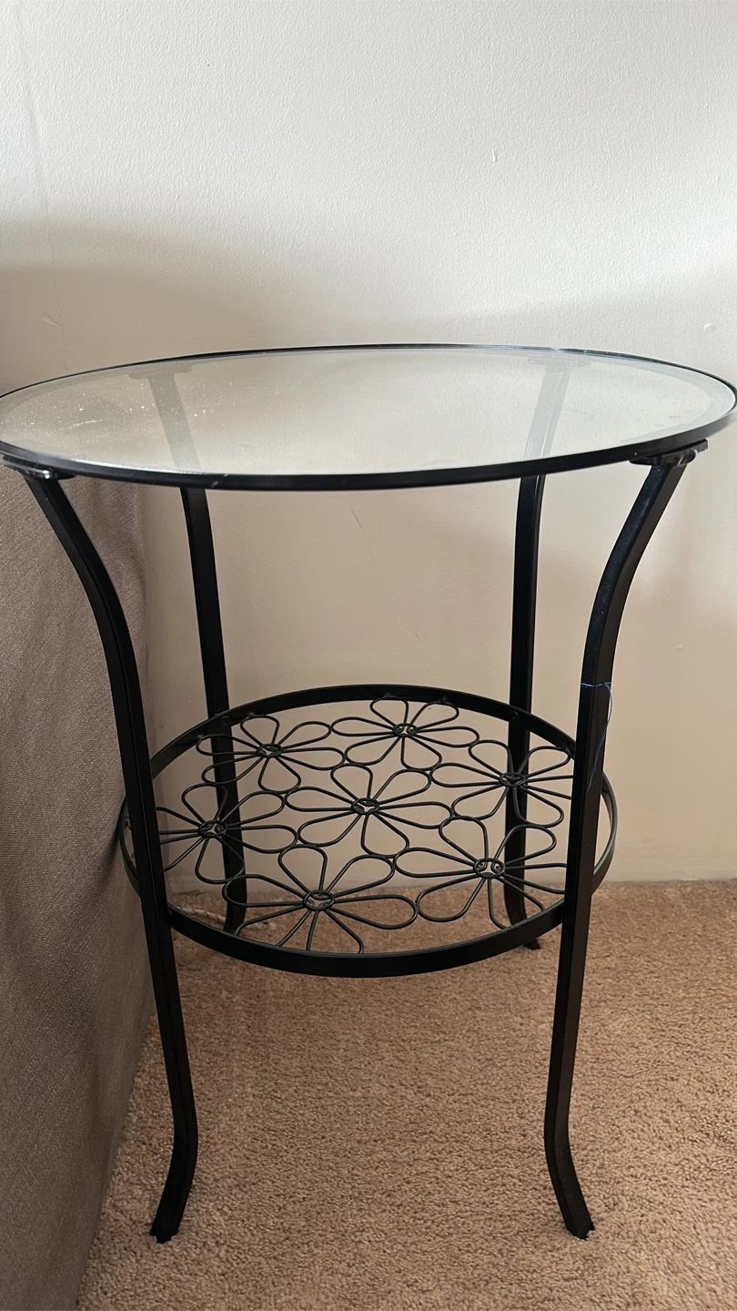 Buy & SellBlack Round Glass Top End TableBlack Round Glass Top End Table$15Selling a cute little end table with a glass top and a black metal frame! It has a second tier with a flower designConditionLike newWHERE TO MEETNear MetrotownView MapSELLERCeeMetrotown100 reviews1 chats·0 favorites·19 views