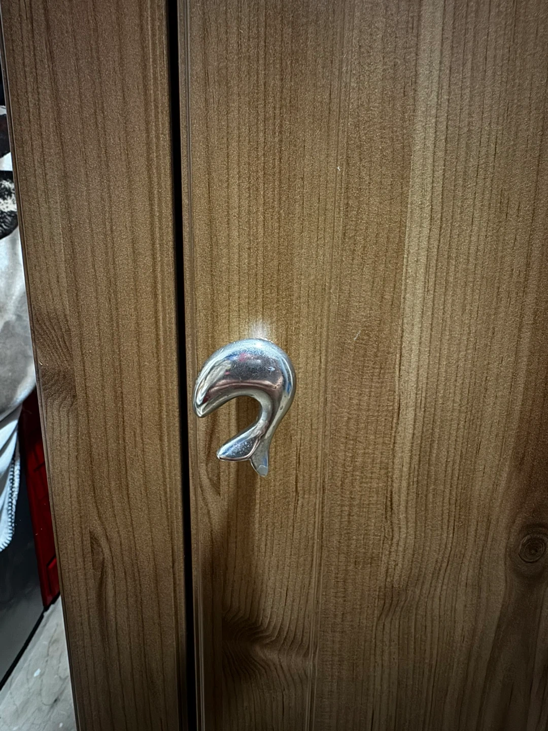 Selling a wooden wardrobe with a mirrored door. It features a hanging rod and shelves for storage. There are some minor scratches on the door, as shown in the photos, wardrobe is used and in okay condition.. lots of storage space just does not fit in our space anymore.