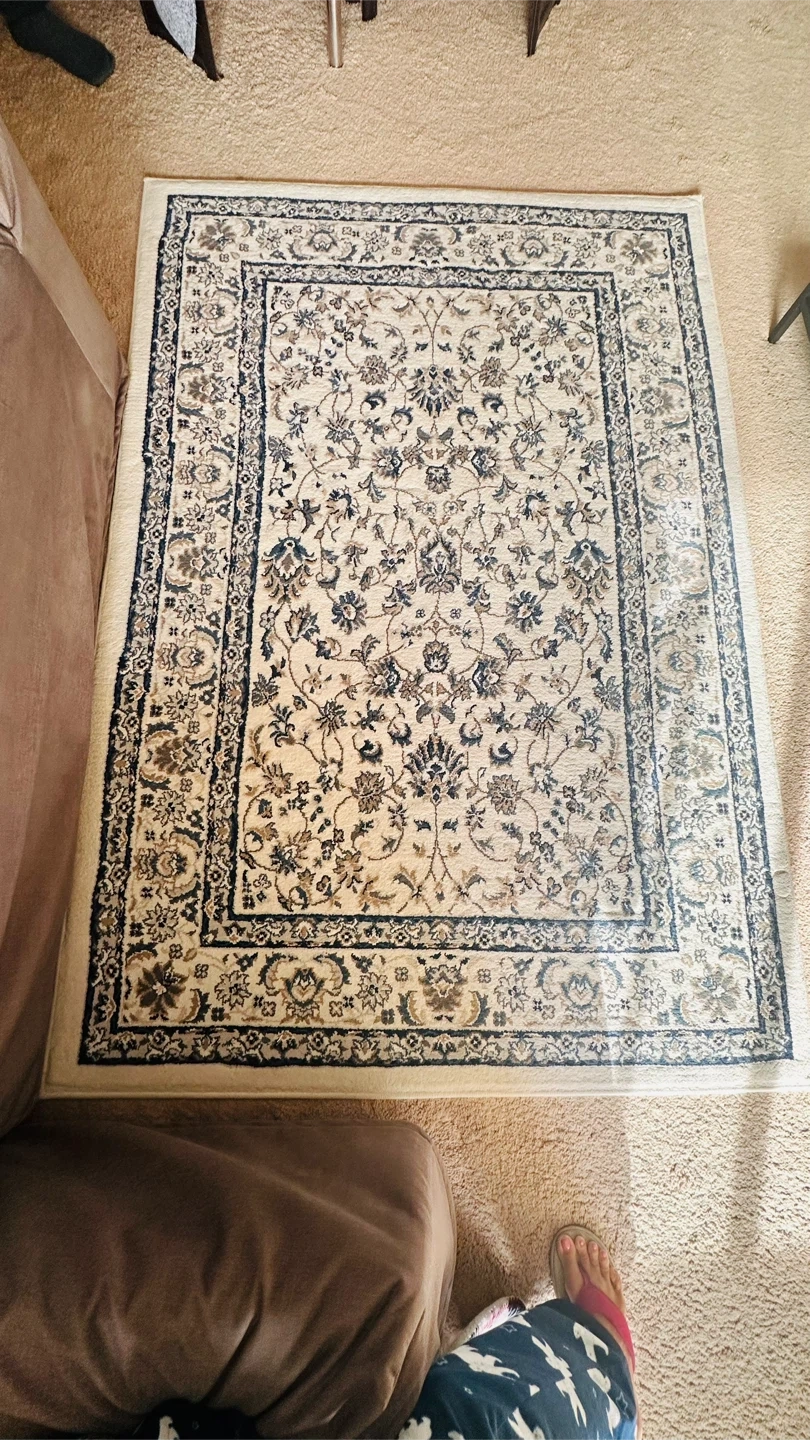 Here's a lovely area rug with a floral pattern! It would be a great addition to any room in your home