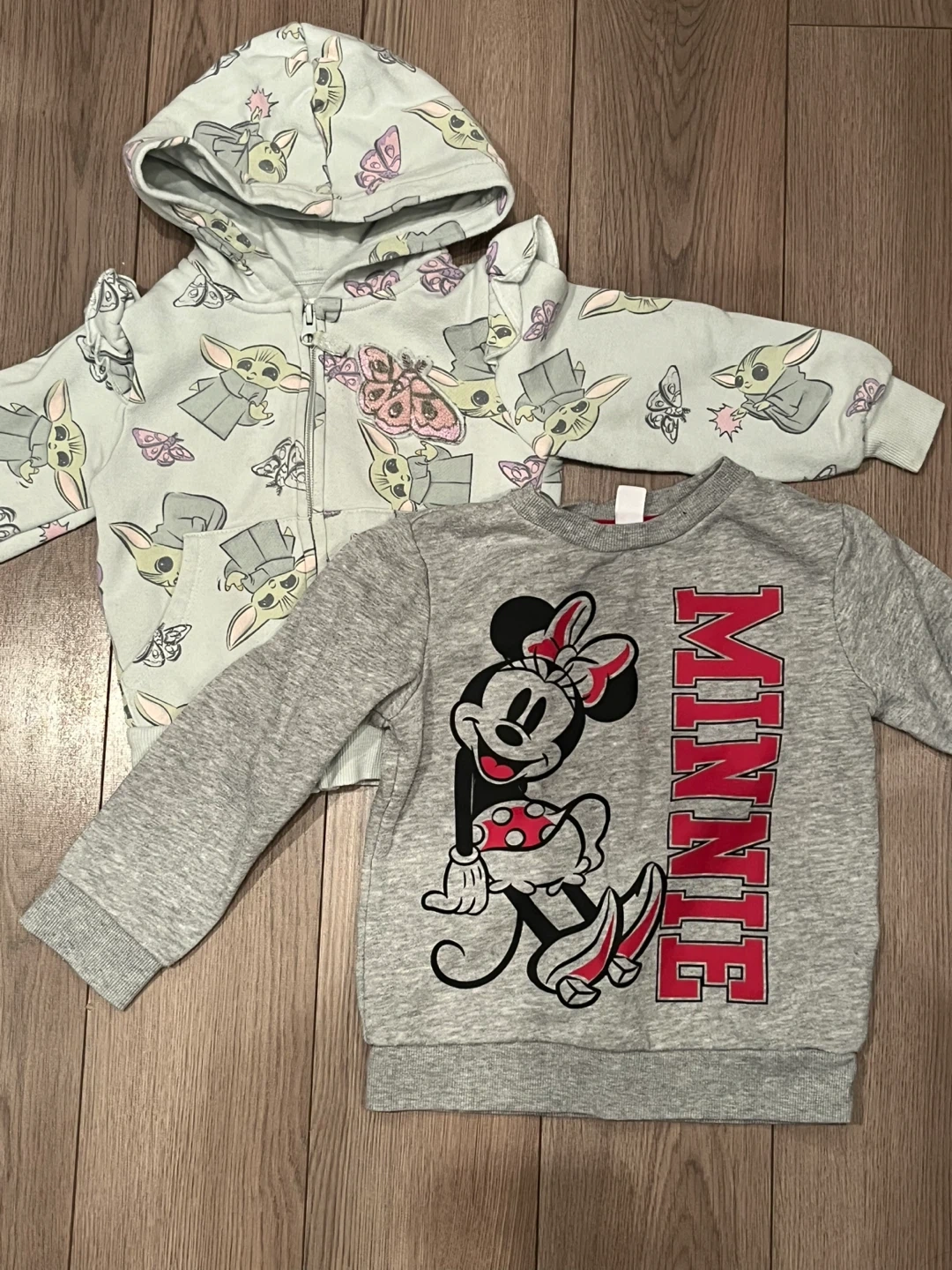 31Two adorable sweaters for your little one! One is a zip-up hoodie featuring Star Wars' Grogu (Baby Yoda) and butterflies. The other is a Minnie Mouse sweatshirt. Both are size 4T and in great condition! Both for $10 Pick up at Brow of the Hill near 10th and Royal, New Westminster. Check out my other listings!