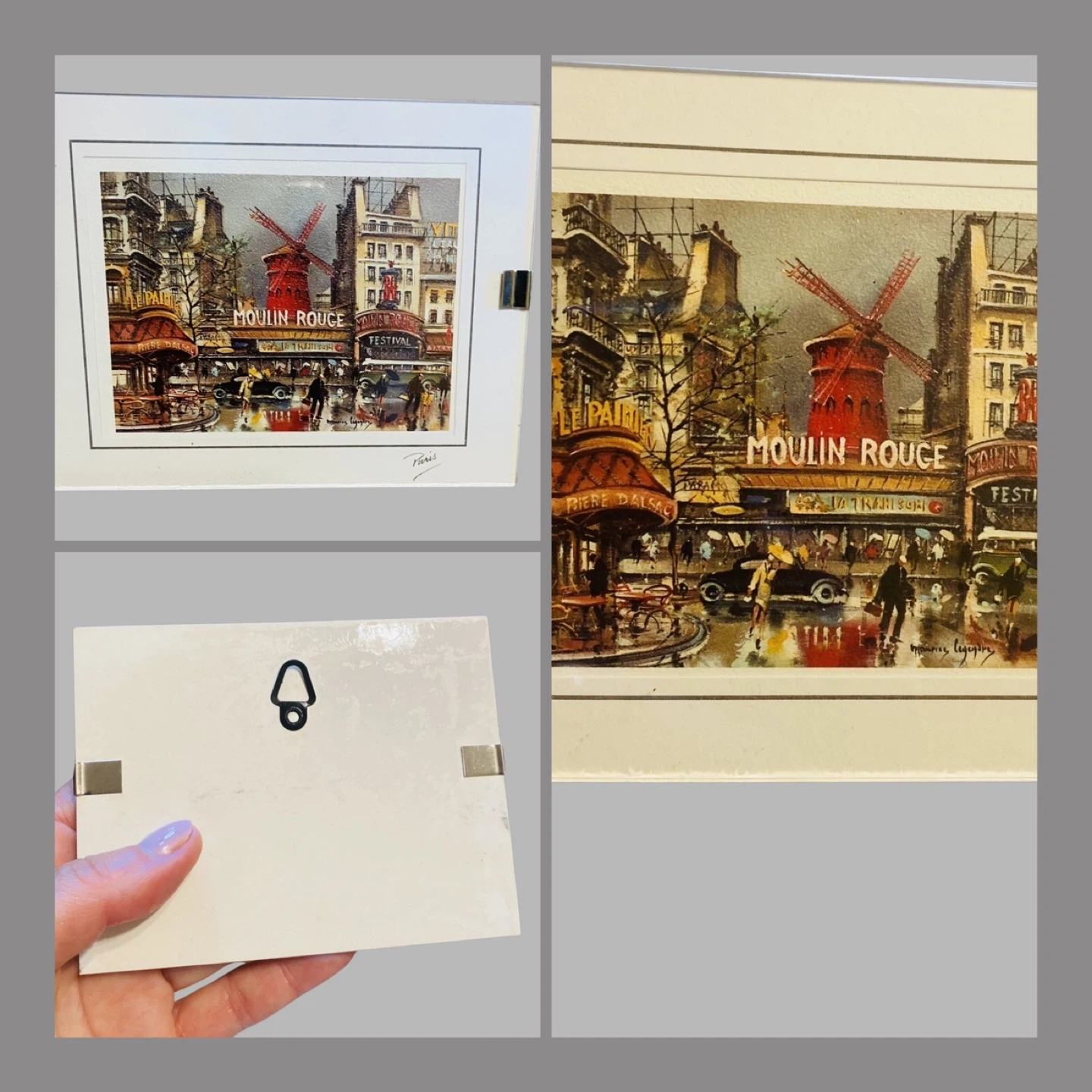 Here's a framed art print featuring the Moulin Rouge in Paris! It's a lovely piece with a classic Parisian scene, signed by Maurice Légey. Perfect for adding a touch of vintage charm to any room
